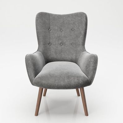 • Playboy - Sessel "BRIDGET" gepolsterter Lehnensessel, Samtstoff in Grau, Retro-Design