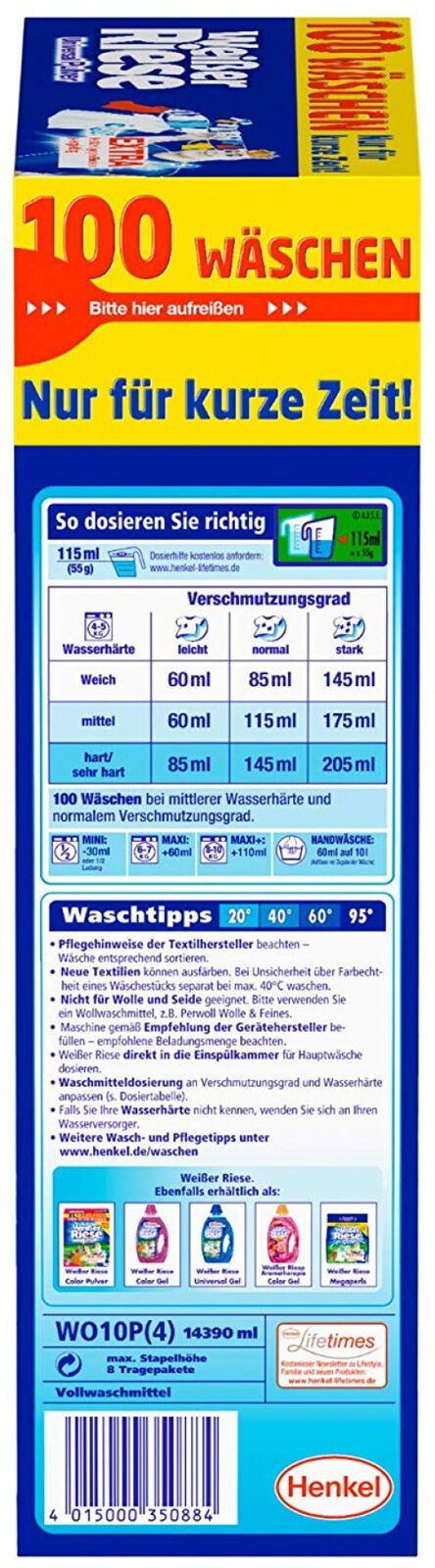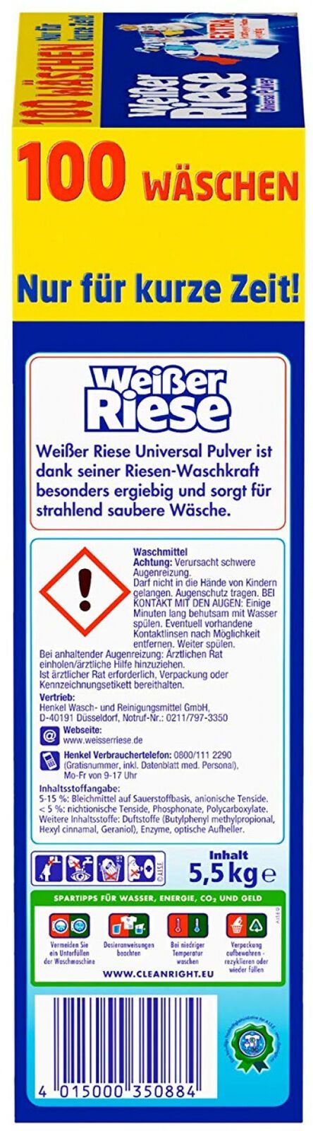 Weißer Riese Universal Pulver Waschmittel Waschpulver 1 Pack 100 Waschladungen