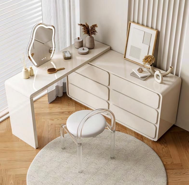 Weißer Schminktisch Moderner Frisiertisch Eck-Schminktisch Schubladen