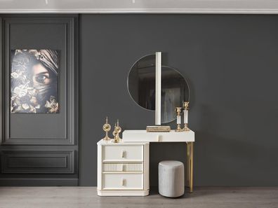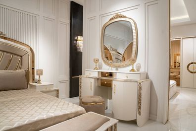 Weißes Schlafzimmer Schminktisch Designer Spiegel Polsterhocker