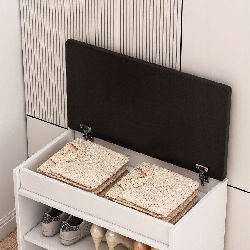 Weißer Schuhschrank mit Sitzfläche und Stauraum für den Flur, 2 Einlegeböden