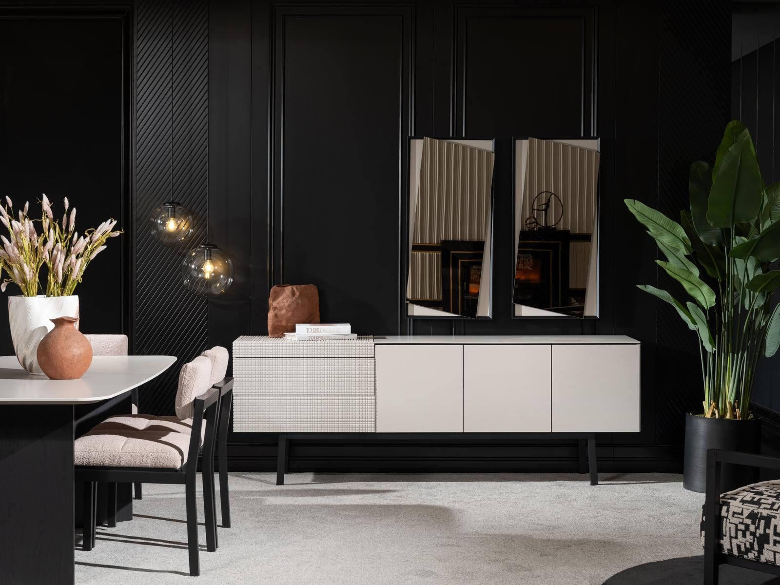 Weißes Holz Esszimmer Set mit Sideboard und Spiegel modern