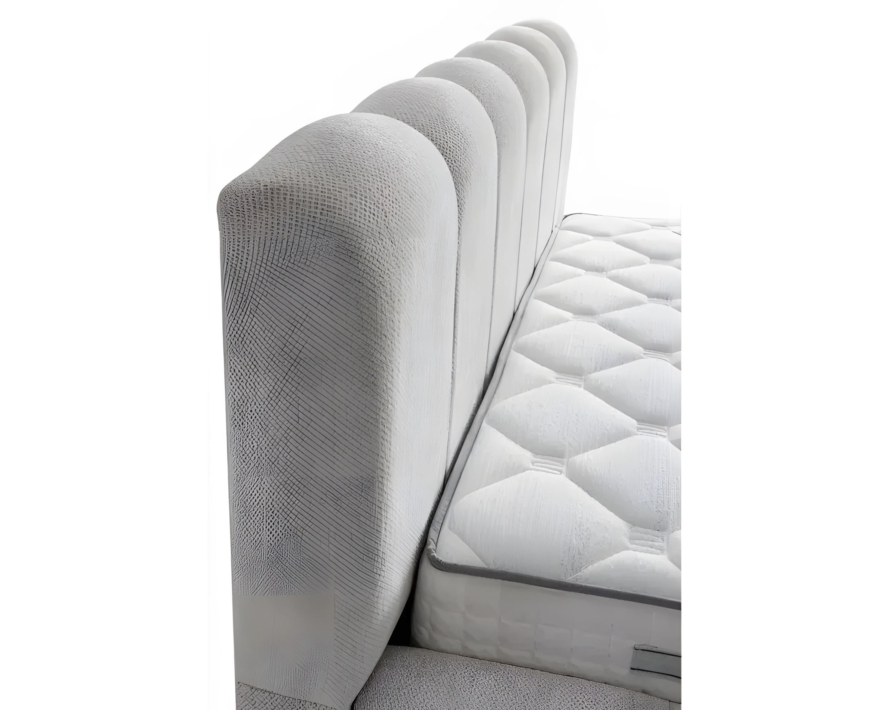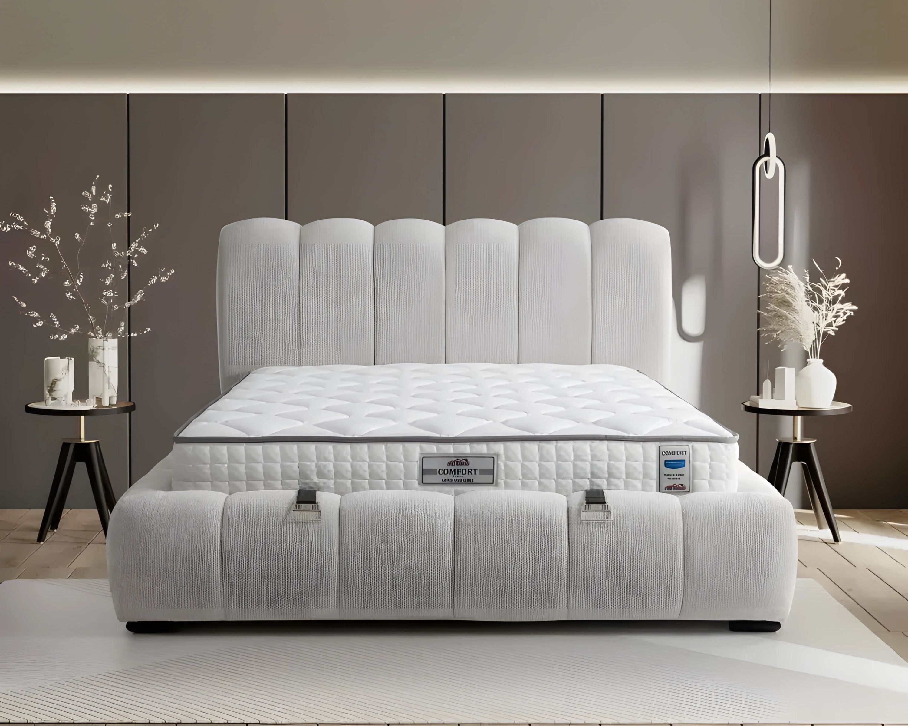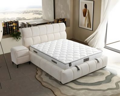 Weißes modernes Bett aus Textil mit hochwertiger Matratze