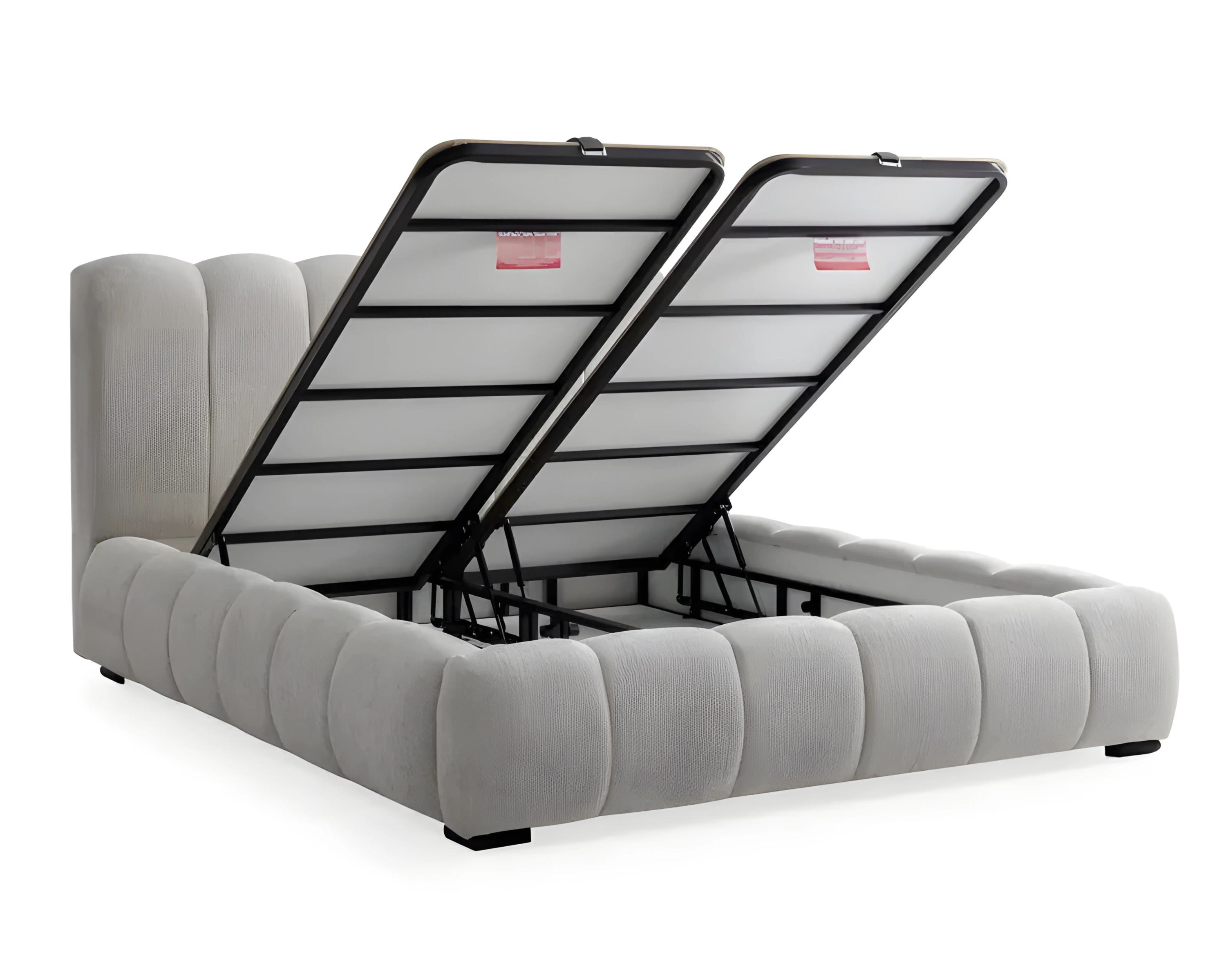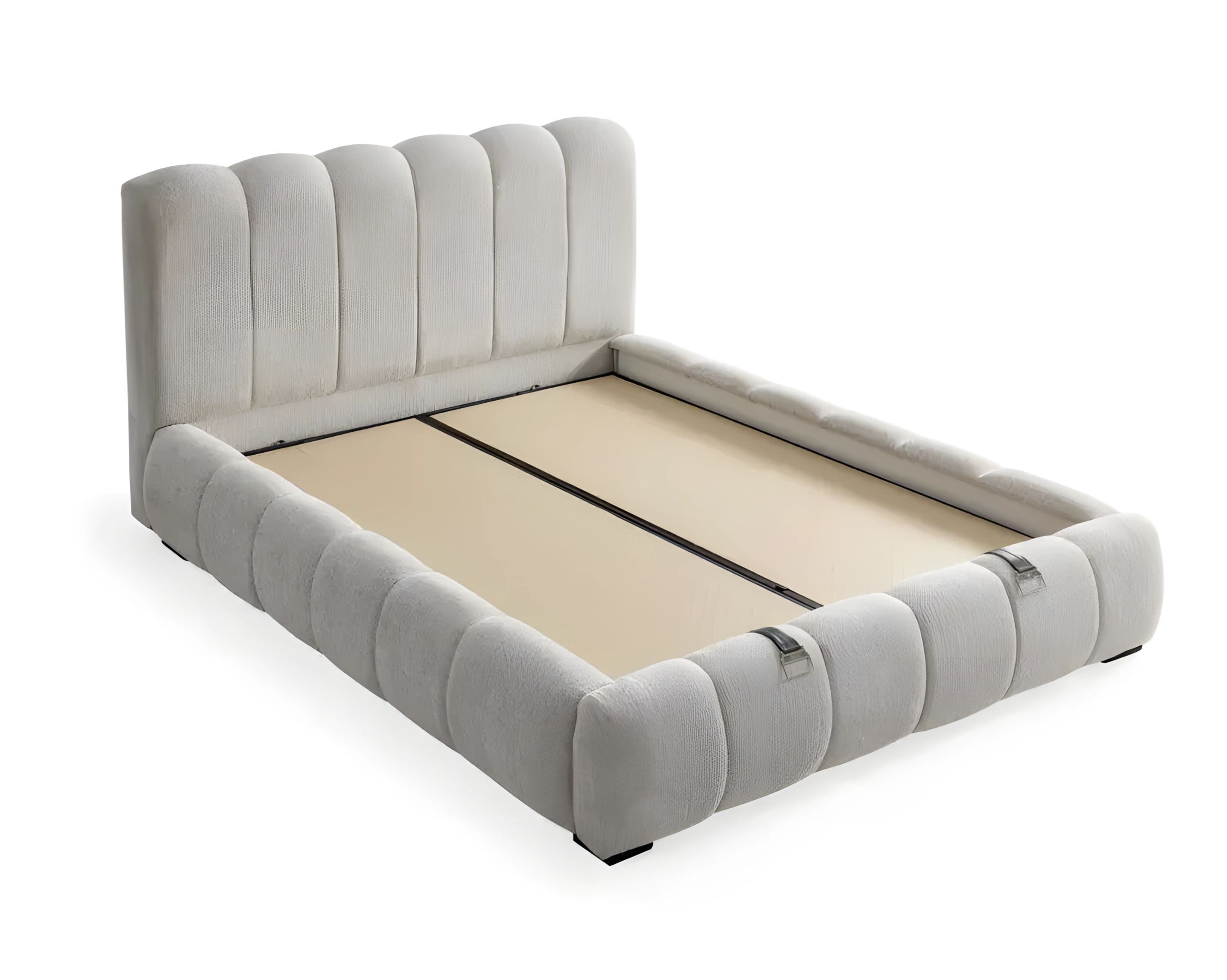 Elegantes Bett mit Matratze aus Textil in Beige für modernes