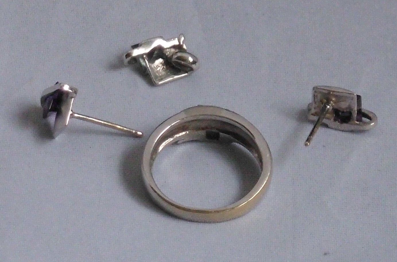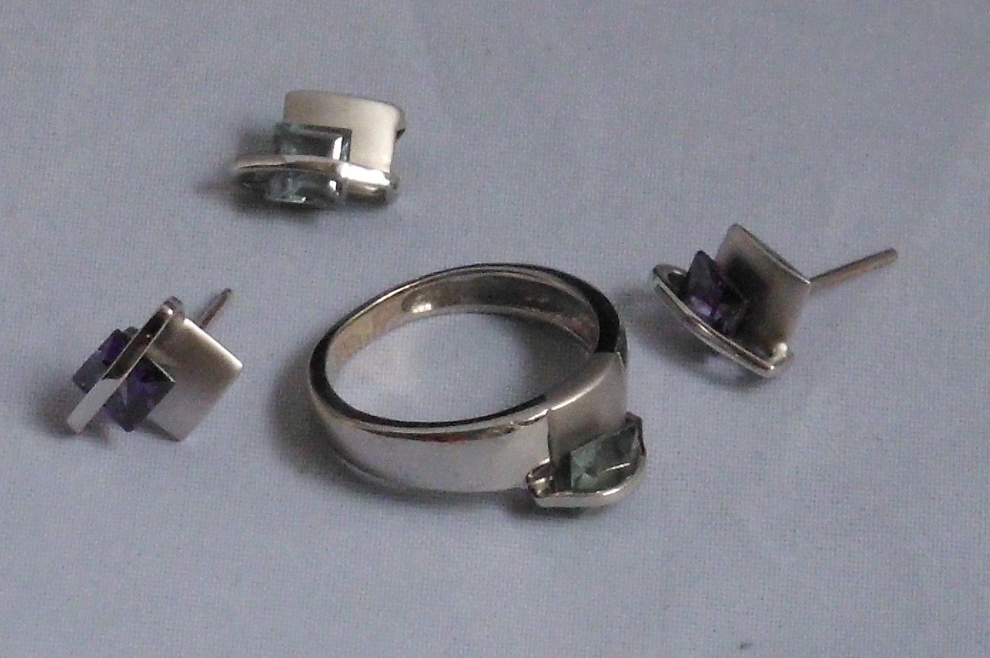 Weißgold Amethyst Topas Set Ohrstecker Anhänger Ring 585 Gold