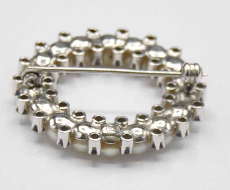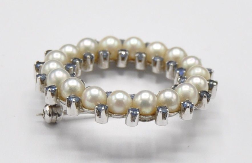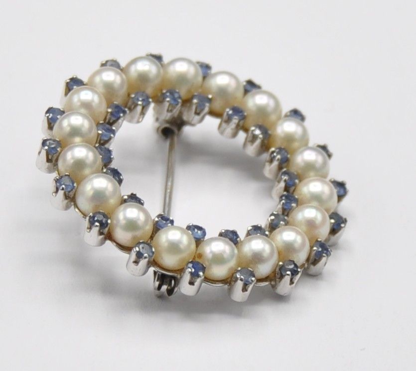 Weißgold Brosche Nadel groß Akoja Perle Safir Kranz 750 Gold Massiv Neu wertig