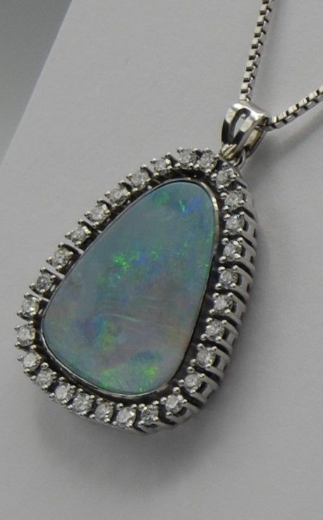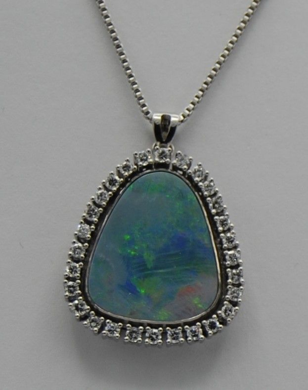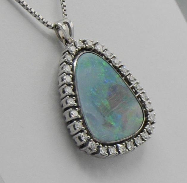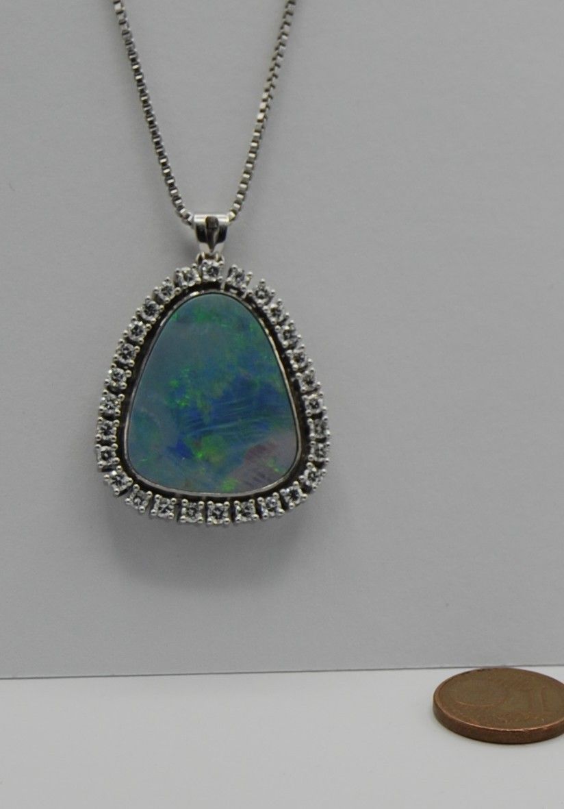 Weißgold Kette + Anhänger Collier Jensen Opal + 1.40 Ct Brillant IF 585 Gold