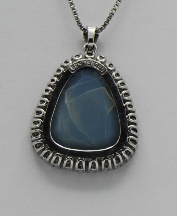 Die Kette ist solide und edel gearbeitet und wiegt 15 Gramm. Sie ist 50 cm lang und hat ein Kastenschloss mit Sicherheitsbügel. Der Opal Anhänger ist 3,7 x 2,7 cm groß. Die 28 Brillanten sind 2,4 mm groß und haben somit zusammen ca. 1.40 Carat. Kette und Anhänger sind mit 585 gestempelt und der Anhänger zusätzlich mit Jensen.