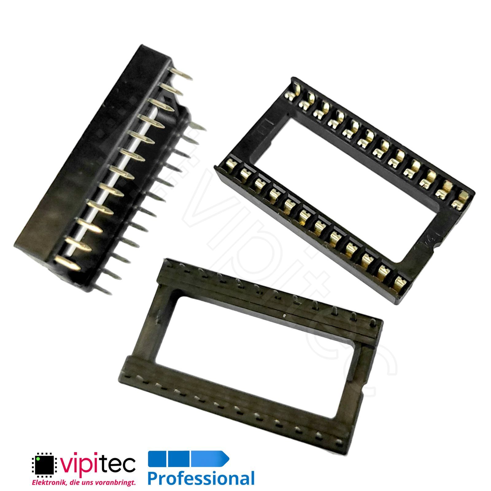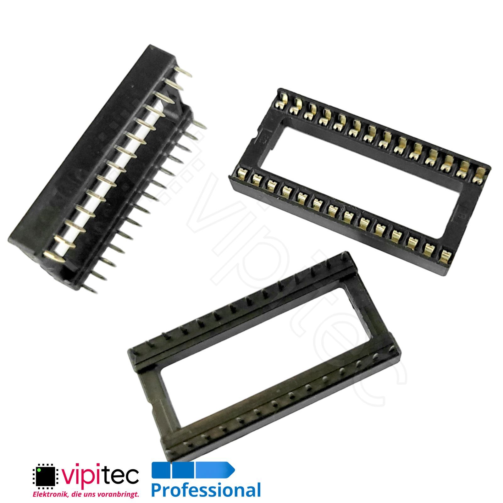 Warenkorb vipitec Shop Aktuelle Angebote Kontakt Zubehör > IC-Sockel Weite DIP IC-Sockel zur Durchsteck& 173;montage Spezifikation: 15,24 mm, -20..105 & 176;C, 20 m& 937; In unserem Shop finden Sie weitere IC-Sockel . Diese hochwertigen IC-Sockel mit 15,24 mm Pin-Reihenabstand ermöglichen eine zu