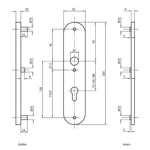 WEKA Schutzbeschlag ES1 Wechselgarnitur Langschild Alu F2 Neusilber