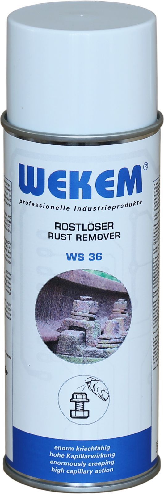 Beschreibung: 1x Wekem WS 36: WS 36 löst mühelos und schnell festsitzende und verrostete Verbindungen. Universell einsetzbar an Schrauben und Gewinden, Bolzen, Gelenken, Scharnieren etc. – Hohe Kapillarwirkung durch neue Wirkstoffformel. Ideales Produkt für Instandhaltung in Industrie, Handwerk und