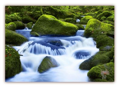 XXL Poster 100 x 70cm Gebirgsbach blaues Wasser über grüne moosbedeckte Steine