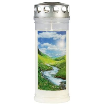 JEKA Gedenkkerze groß, Gebirgsbach mit Silberdeckel, Brenndauer bis zu 7 Tagen
