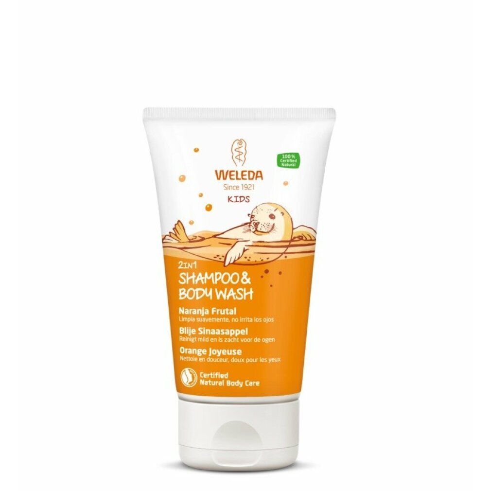 Weleda baby Kinder Duschgel & Shampoo 2in1 Fruchtige Orange, 150 ml