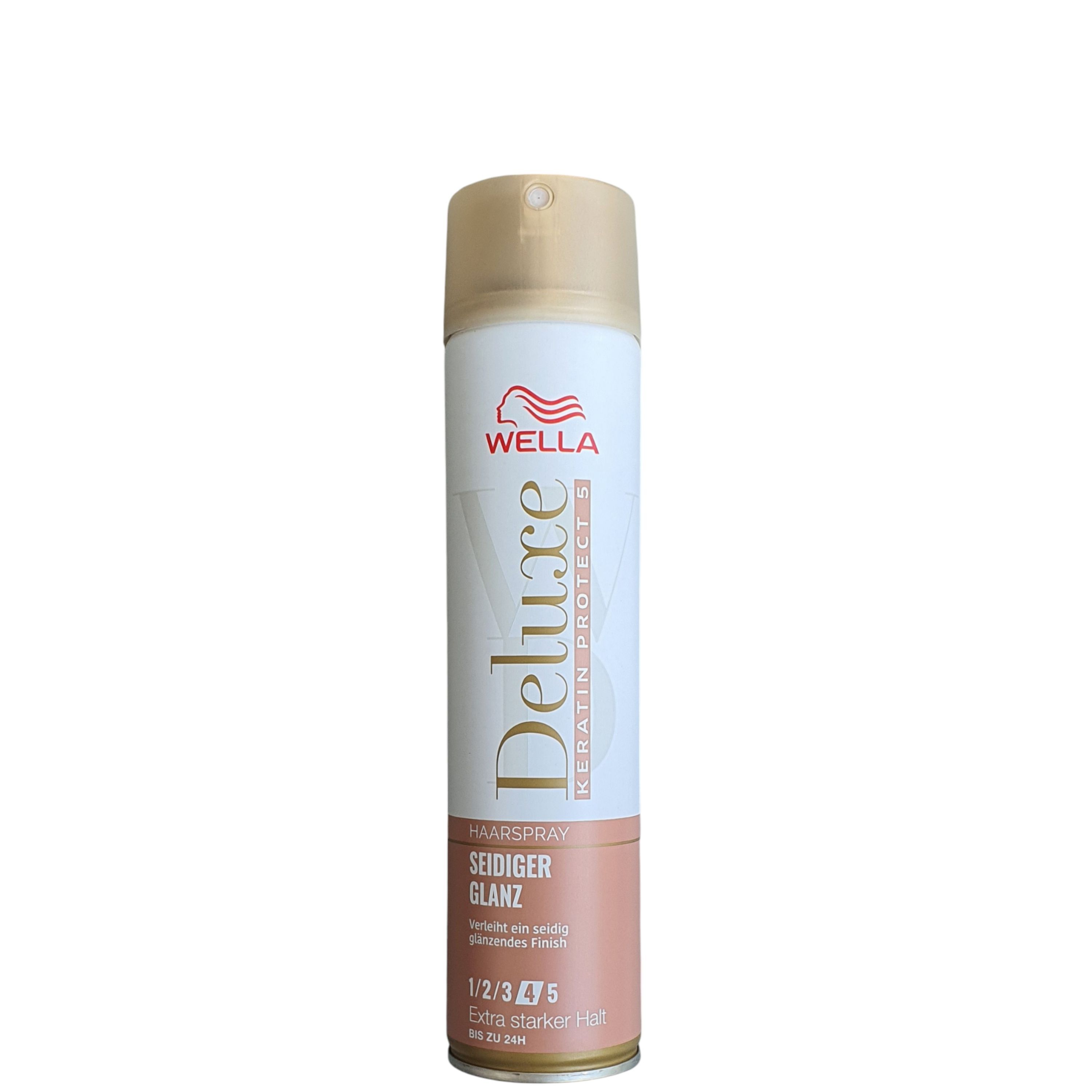 Wella Deluxe Keratin Protect 5 Haarspray Seidinger Glanz mit Extra starkem Halt,hält bis zu 24H und verleiht ein seidig glänzendes Finish. Es schützt das Haar vor UV-Strahlung und bietet einen wundervollen Glanz und Halt. Das Haarspray mit Keratin-Schutz-Komplex hilft das Haar vor Frizz und Luftfeuc