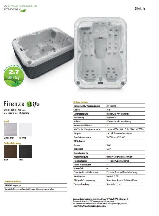 Wellis Cityline Whirlpool Firenze Life Deluxe 3 Personen 213 x 160 x 75 37 Düsen