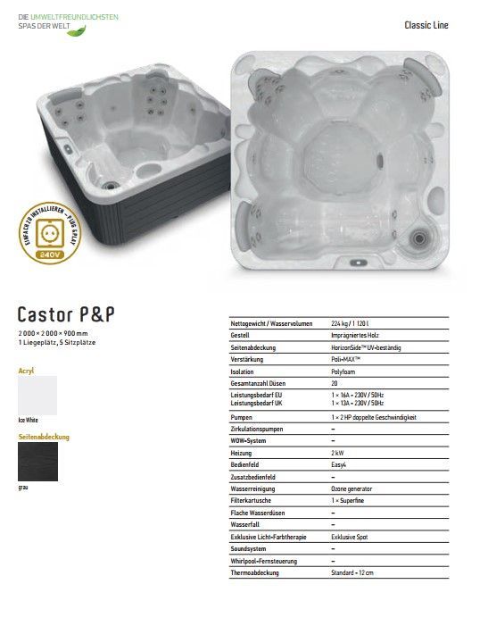 Wellis Classicline Whirlpool Castor P&P 3 Personen 213 x 160 x 75 cm 42 Düsen
