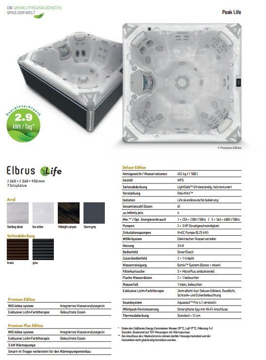 Wellis Peaklife Whirlpool Elbrus Life Deluxe 7 Personen 236 x 236 x 95 cm 61 Düsen