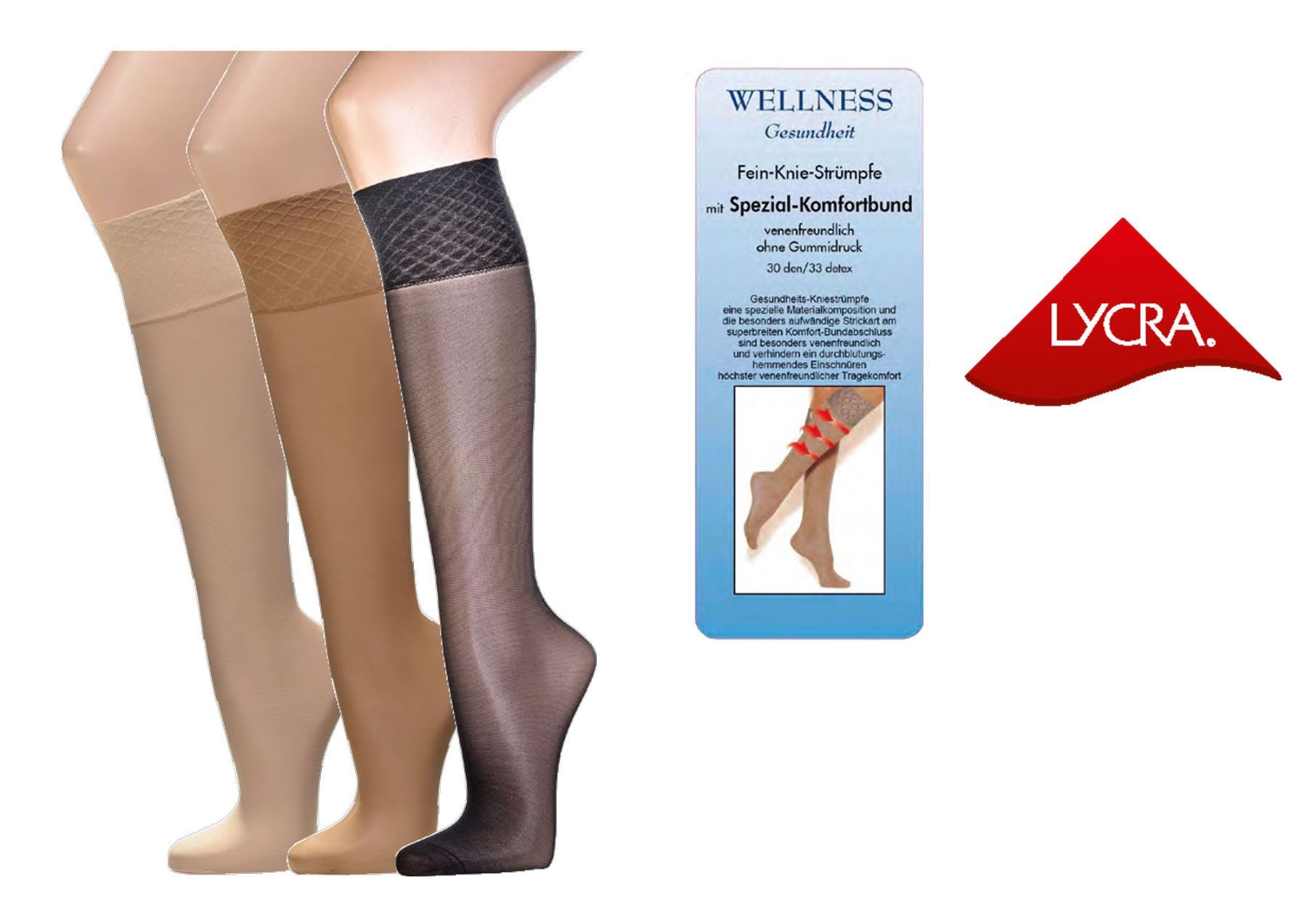 Wellness-Fein-Knie-Strümpfe in 30den ohne Gummidruck 5er Pack