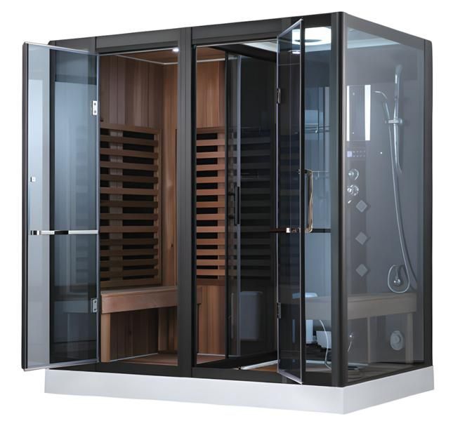 Wellness-Sauna mit Dusche Dampfbadkabine Multifunktionsdusche 200x130 cm