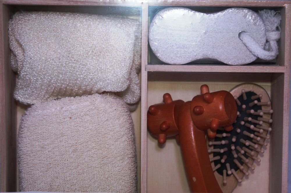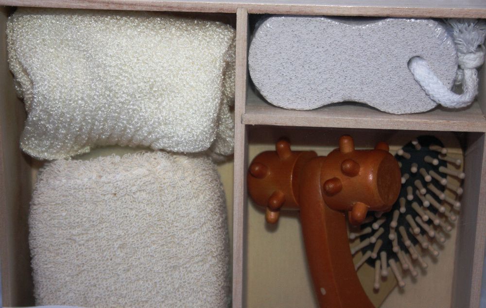 Lifetime Wellnessset - Badezimmer Geschenk - Set Bürste Seifschwamm Massage Geschenkidee