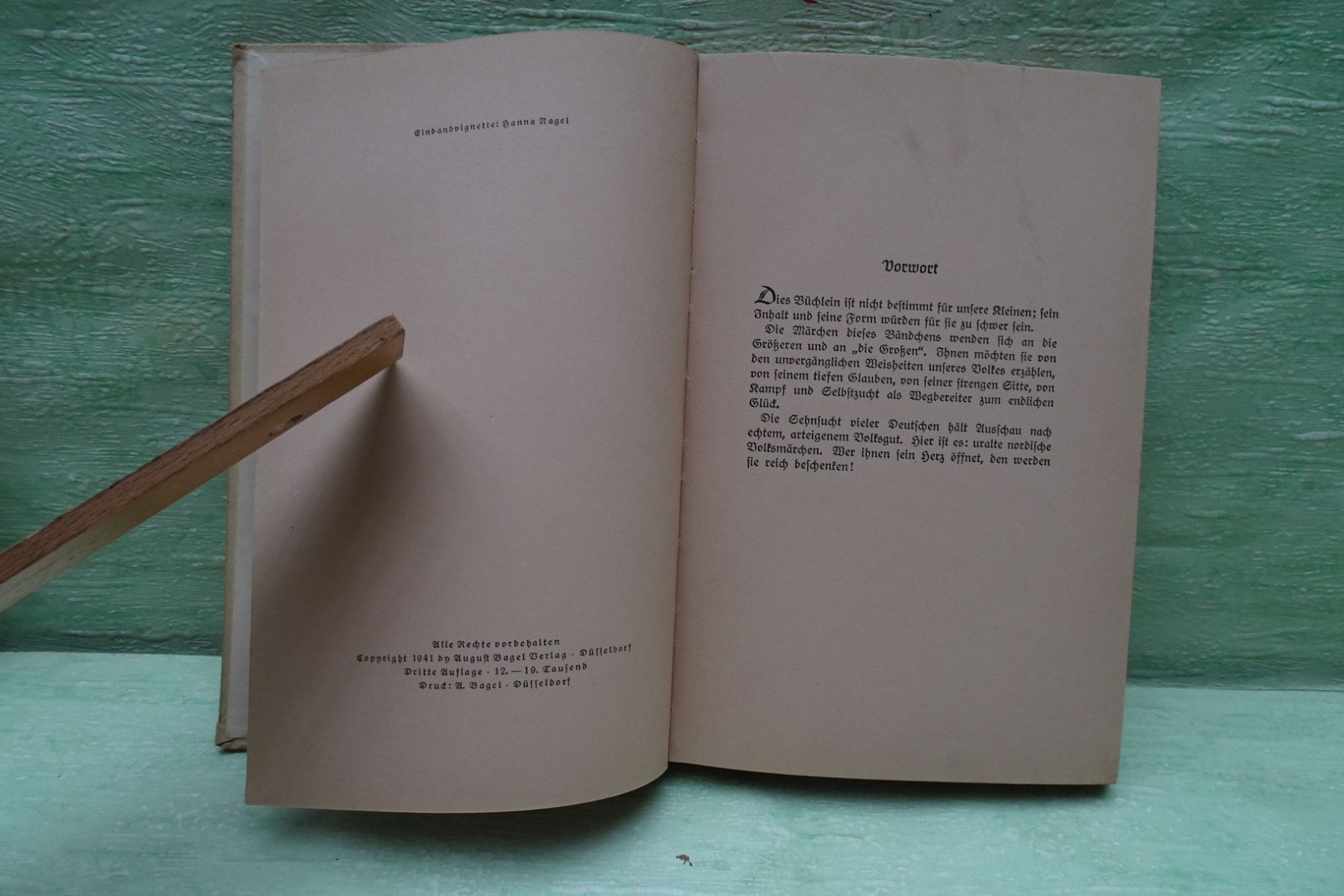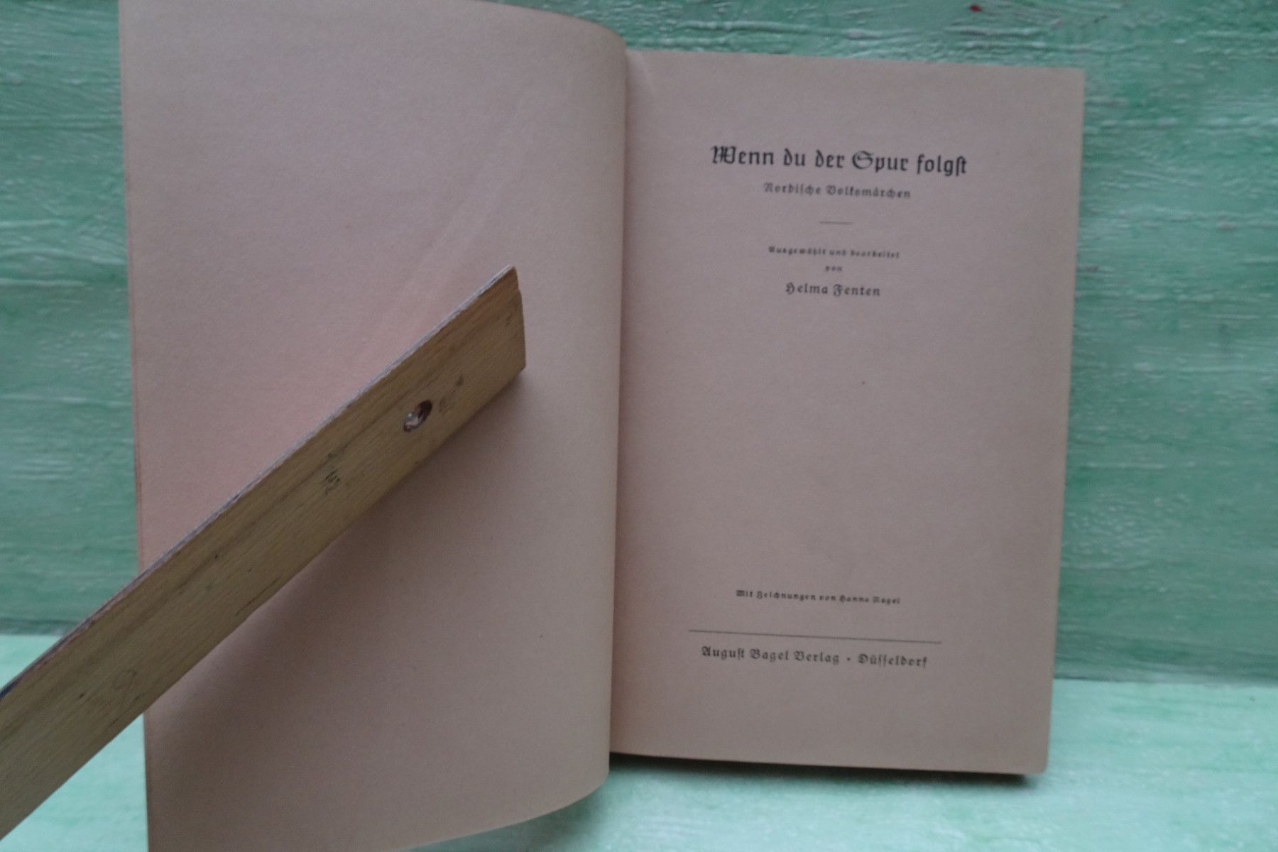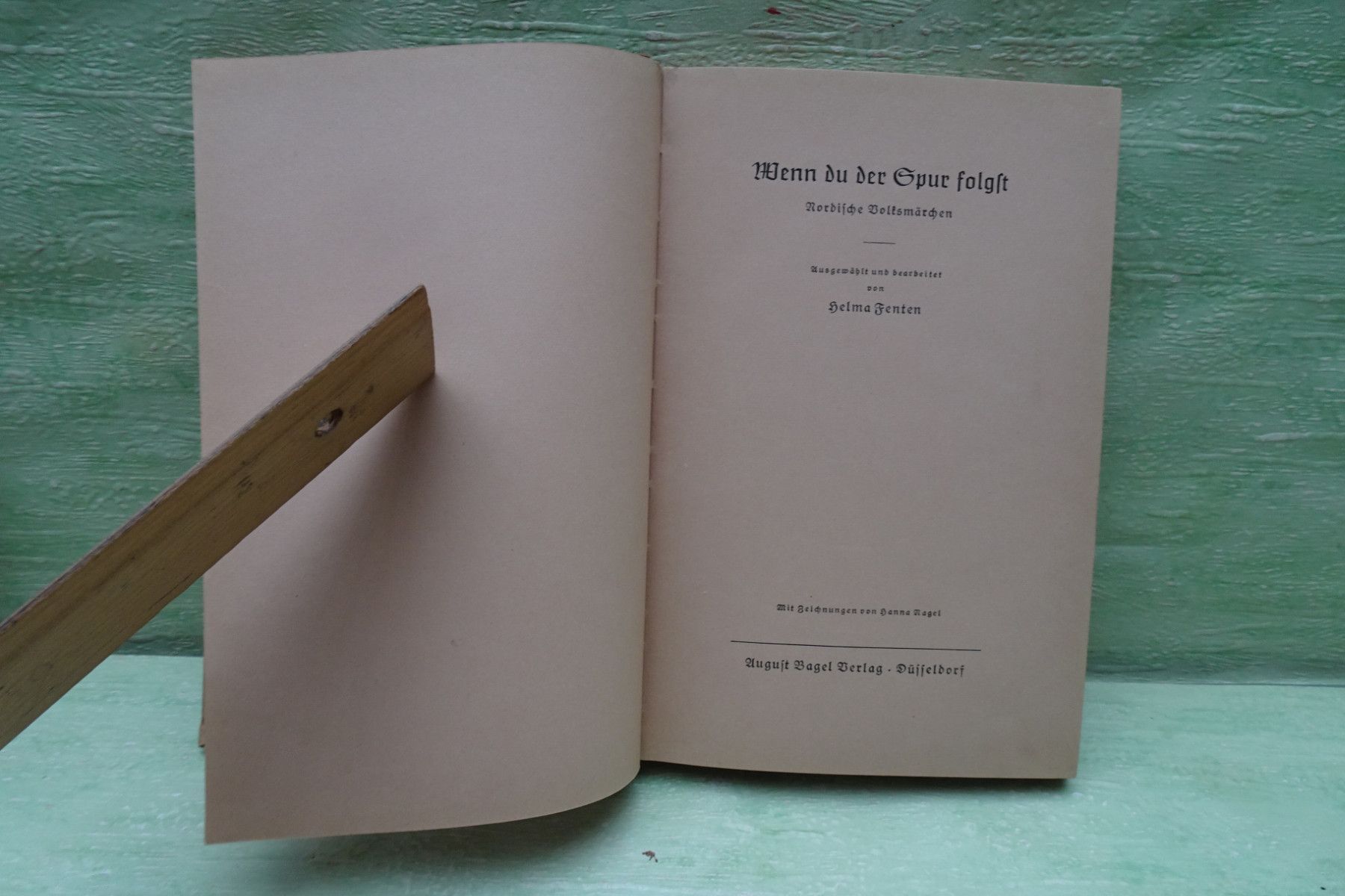 Jugend- & Kinderbücher ... Erinnerungen ..... Wenn Du der Spur folgst Nordische Volksmärchen ausgewählt und bearbeitet von Helma Fenten mit Zeichnungen von Hanna Nagel Copyright 1941 by August Bagel Verlag Düsseldorf 155 Seiten in Altdeutscher Schrift Frakturschrift Sütterlin Halbleinen , Fadenb