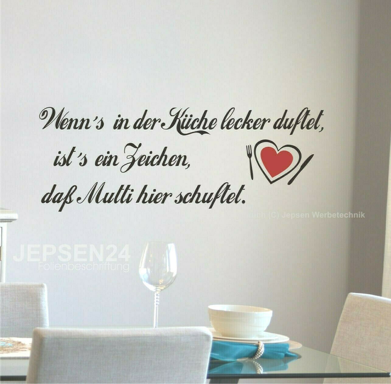 Wandtattoo Spruch Z257 Wenn´s in der Küche lecker duftet, ist´s ein Zeichen, dass Mutti hier schuftet. Auf Wunsch auch mit Namen ihrer Wahl Größe: 80x30cm Farbe: nach Wunsch mitteilen