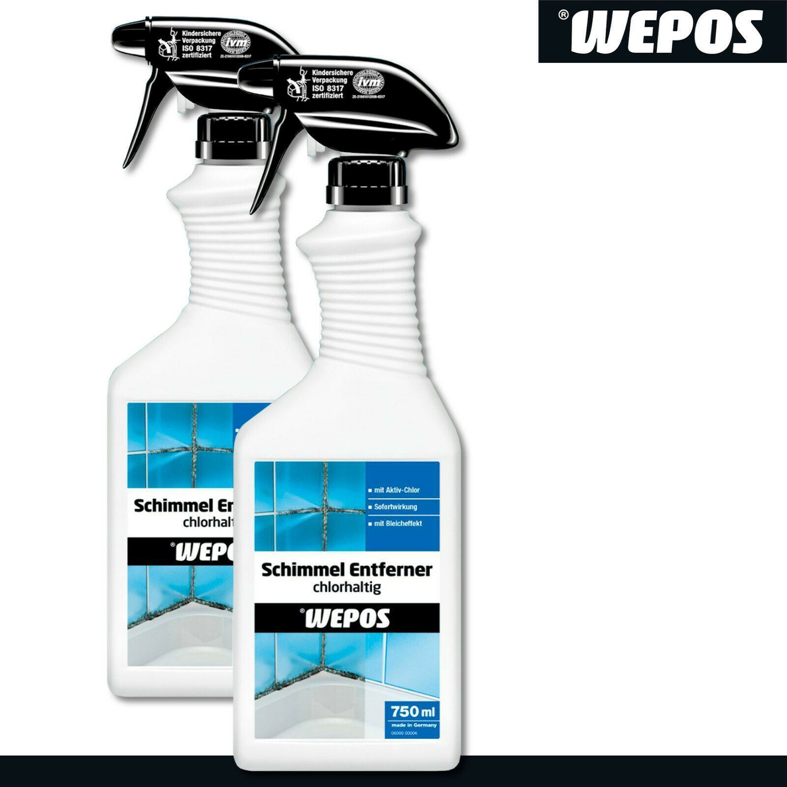 Wepos 2 x 750 ml Schimmel Entferner chlorhaltig Bleichwirkung Sofortwirkung