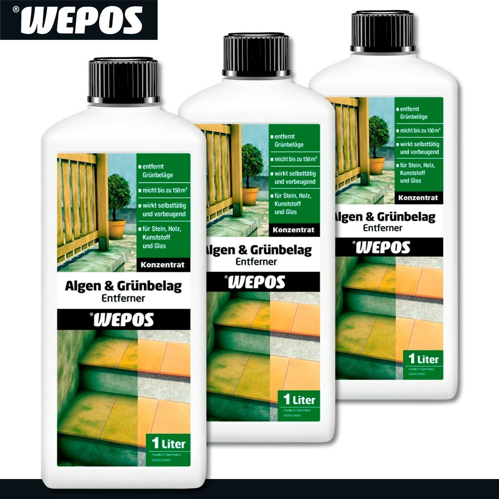 Wepos 3 x 1 l Algen & Grünbelag Entferner Konzentrat
