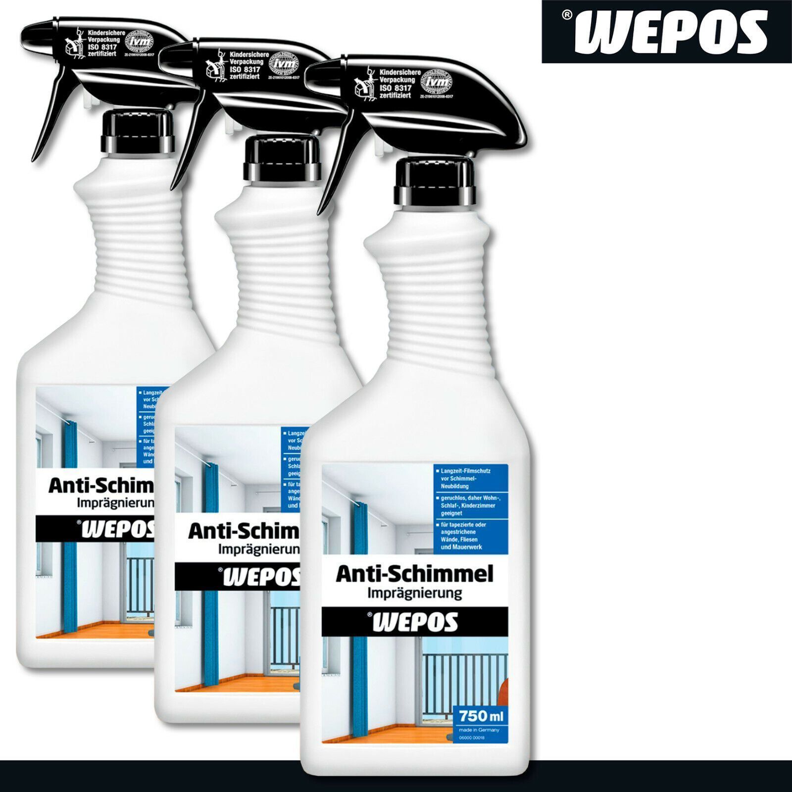 Wepos 3 x 750 ml Anti Schimmel Imprägnierung Vorbeugung Geruchlos Innenräume