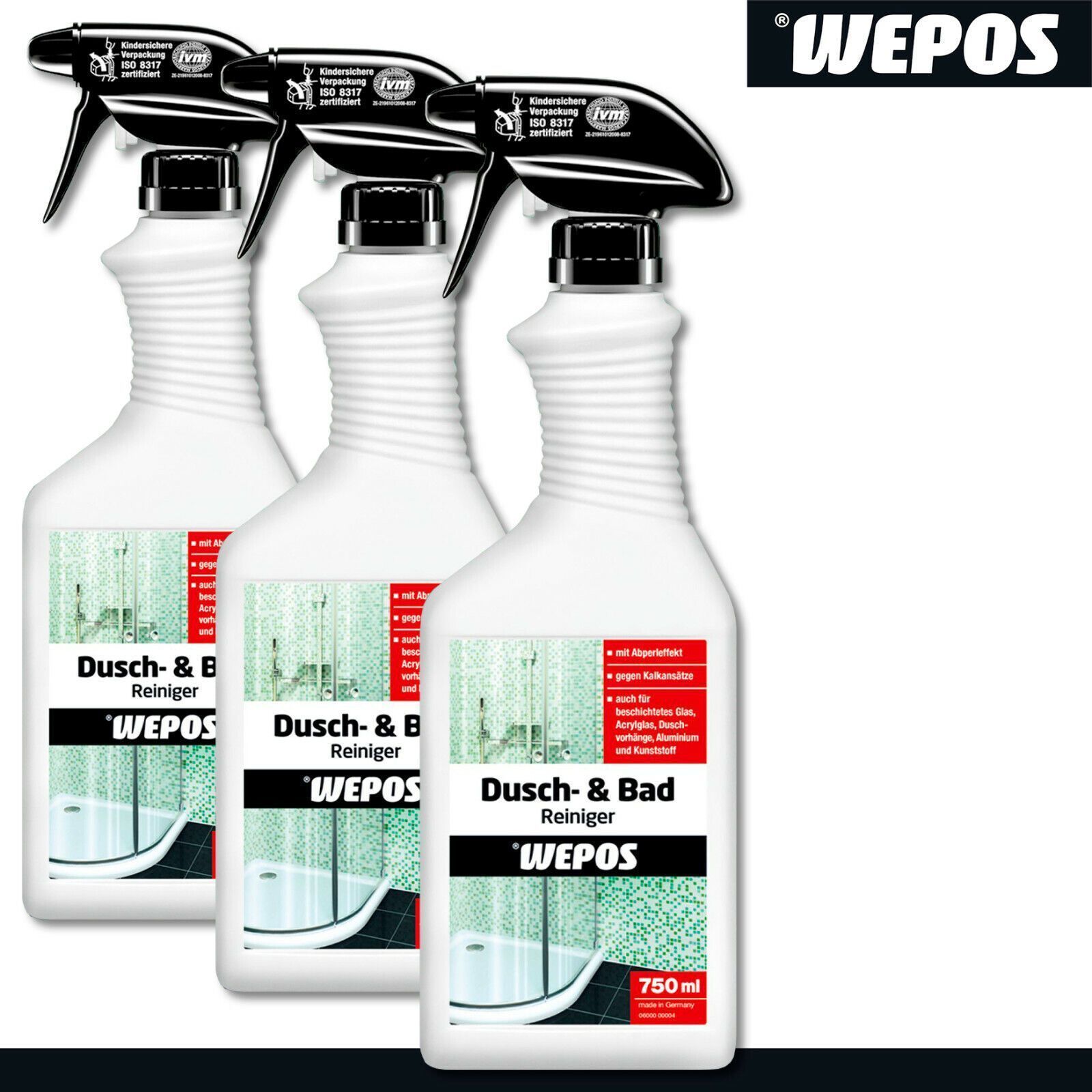 Wepos 3 x 750 ml Dusch- & Bad Reiniger Gebrauchsfertig Abperleffekt Duschvorhang