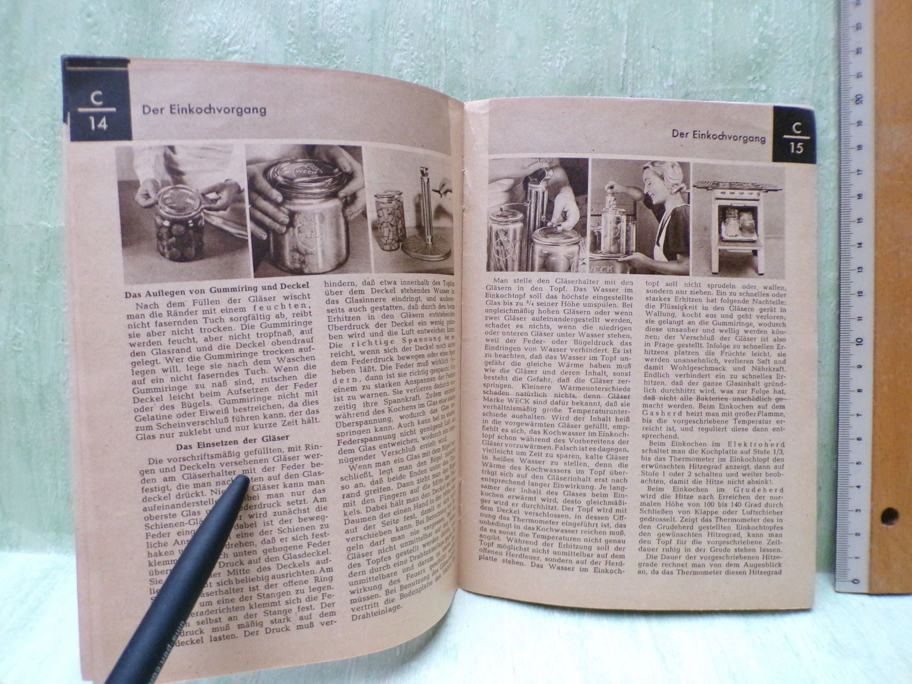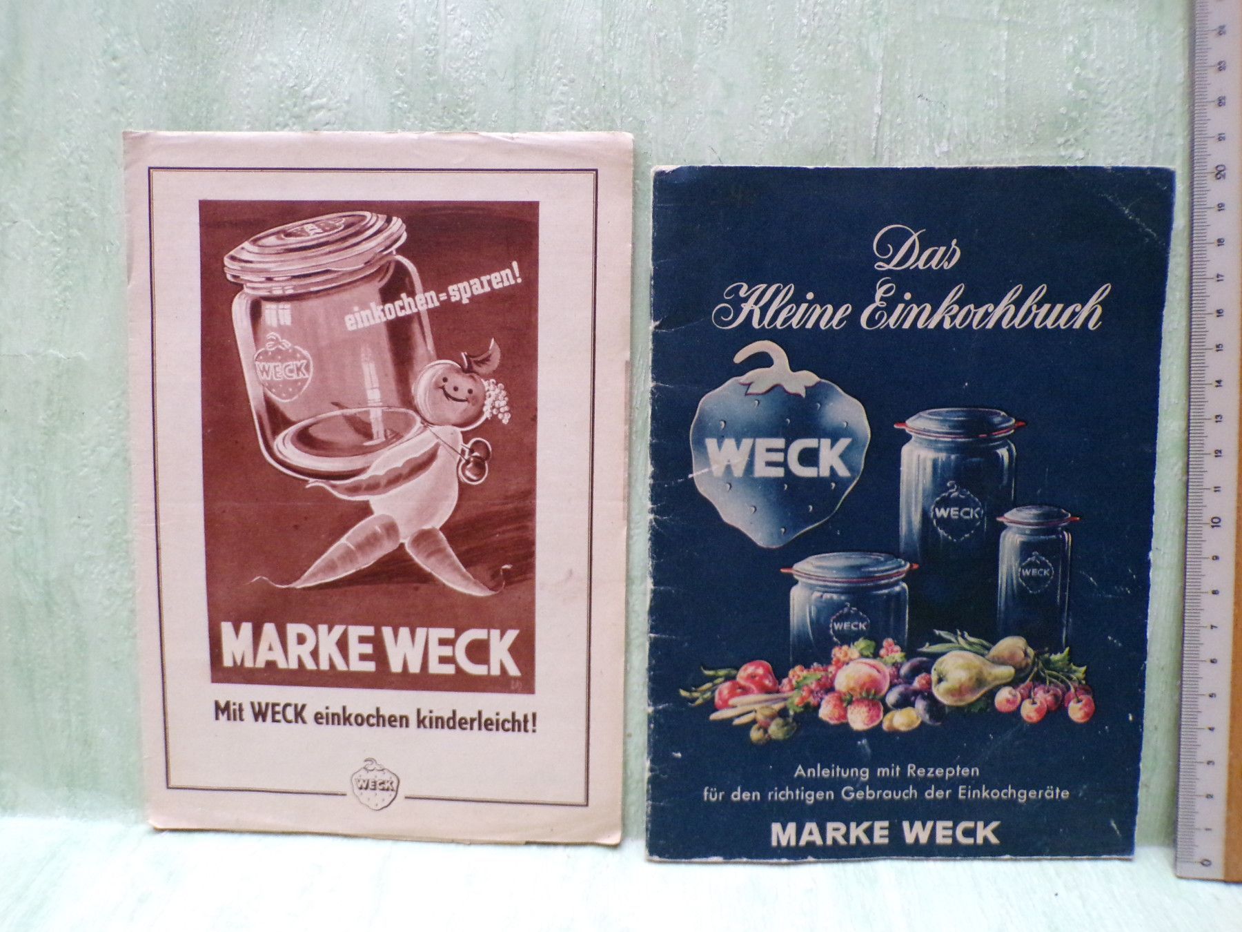 Jugend- & Kinderbücher ... Erinnerungen ..... . . 2 Werbehefte : Das kleine Einkochbuch Anleitung mit Rezepten für den richtigen gebrauch der Einkochgeräte herausgegeben von der Lehr- und Versuchsküche Johann Weck & Co , Öflingen Baden WerbeHeft mit 34 Seiten Zustand : gut gut+ & . einko
