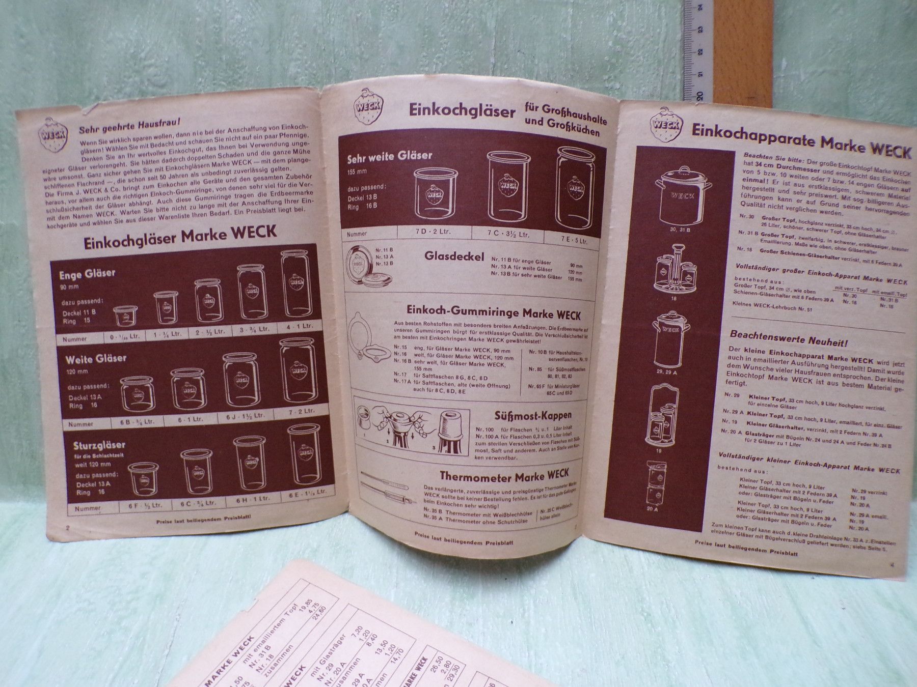 Werbehefte Weck kleine Einkochbuch mit Weck einkochen kinderleicht Preisblatt