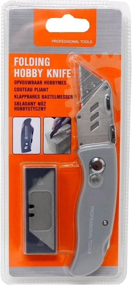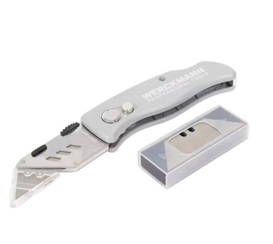 Werckmann Bastelmesser Klappmesser mit 5 Klingen Teppichmesser hochwertiges Grau