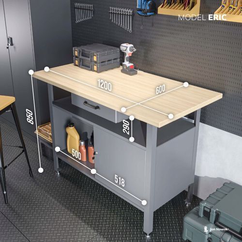 Werkbank mit Arbeitsplatte Werktisch mit 6 Schubladen bis 400 kg Metall 120x60x85 cm