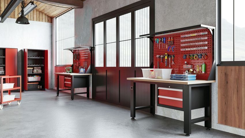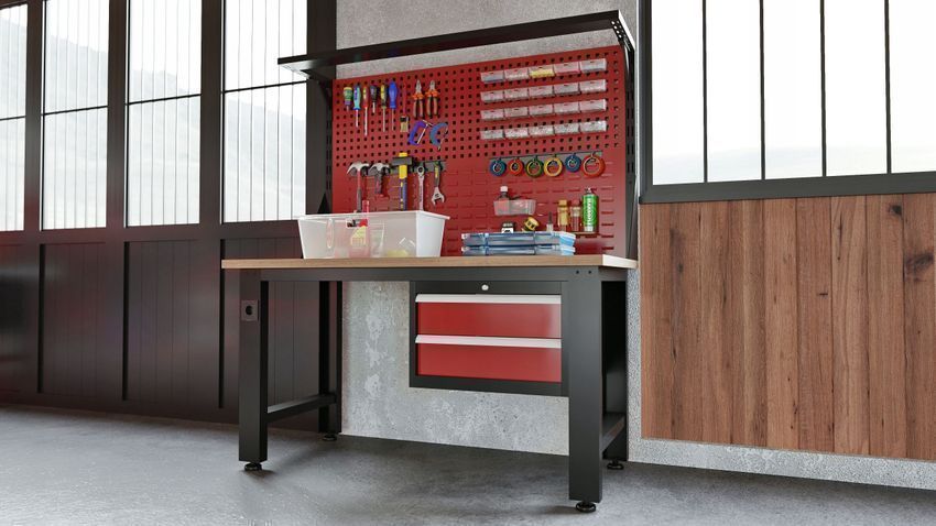 Werkbank mit Lochwand Werktisch Arbeitsplatte mit 2 Schubladen 150 x 170 x 75 cm
