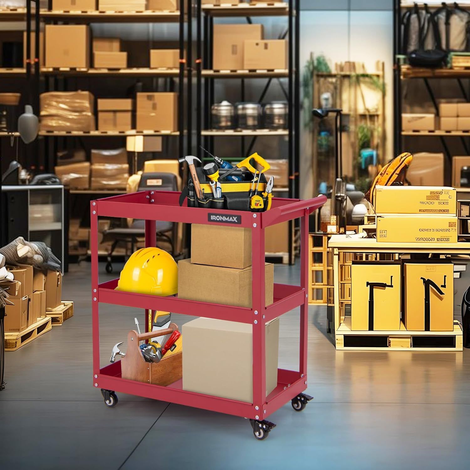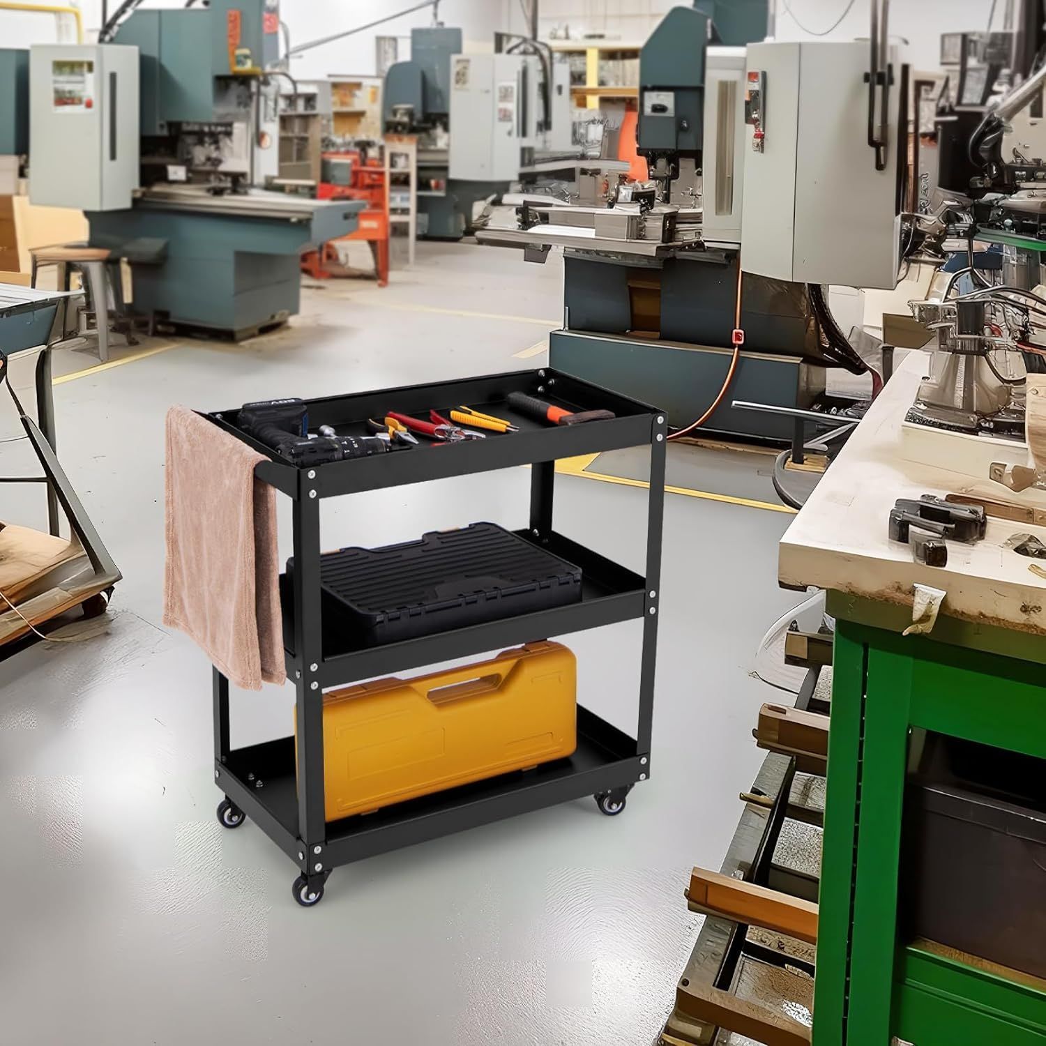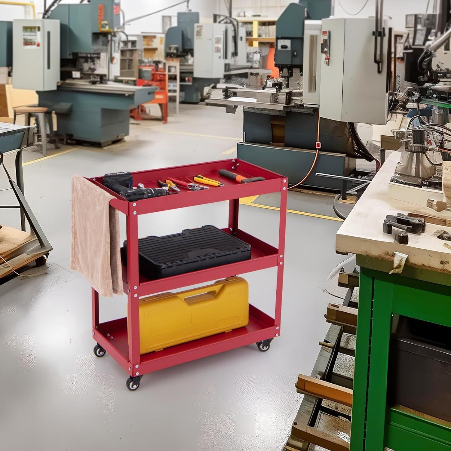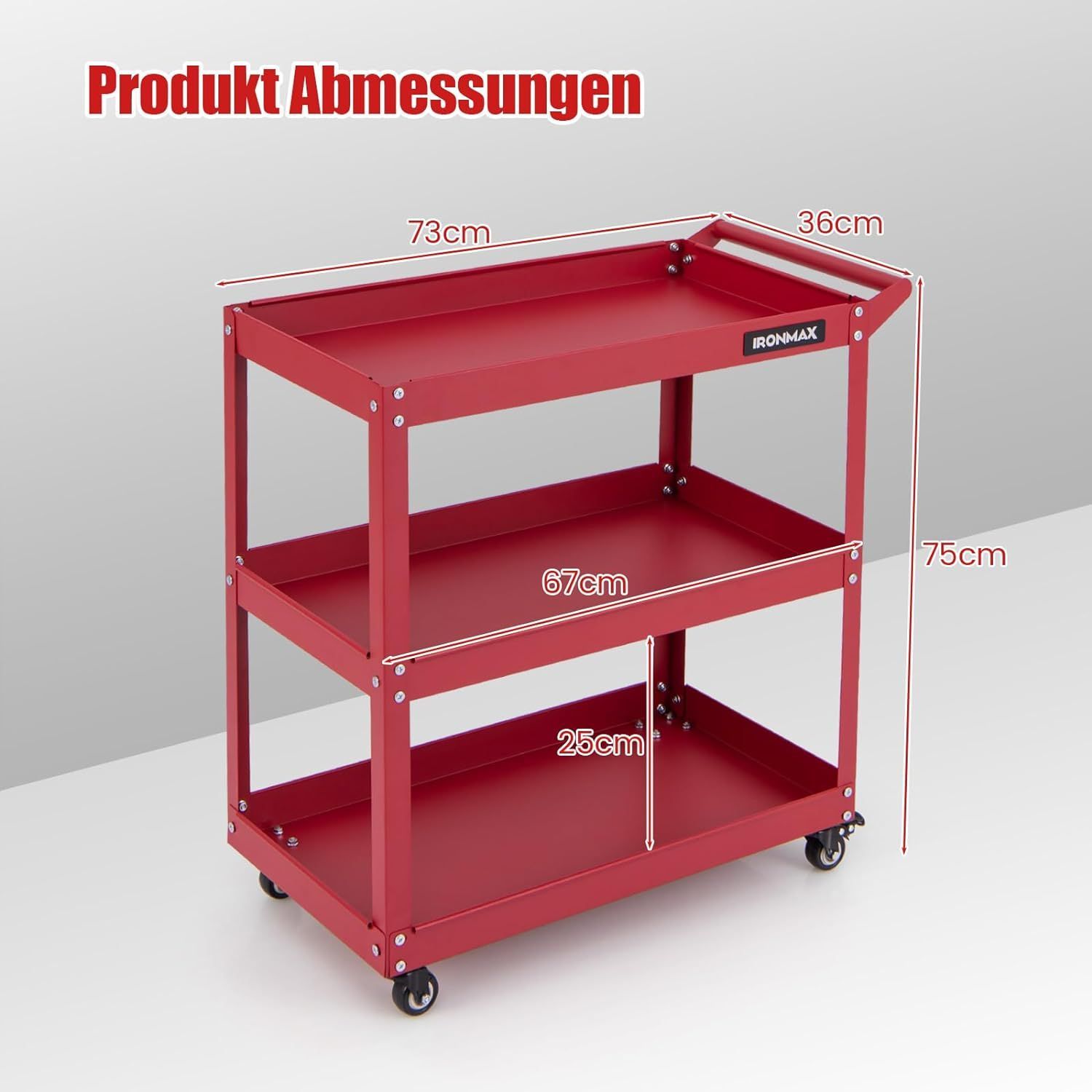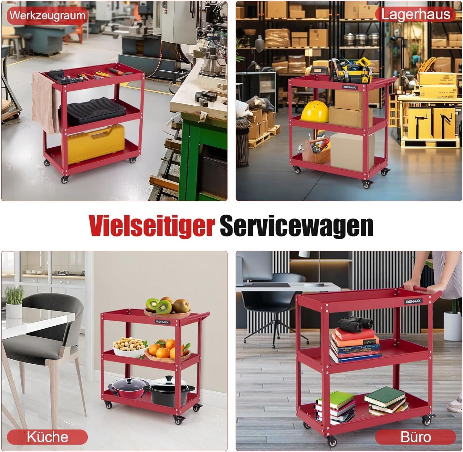 Werkstatt-Rollwagen 3 Etagen, Werkstattwagen mit 4 Universalrädern & Griff