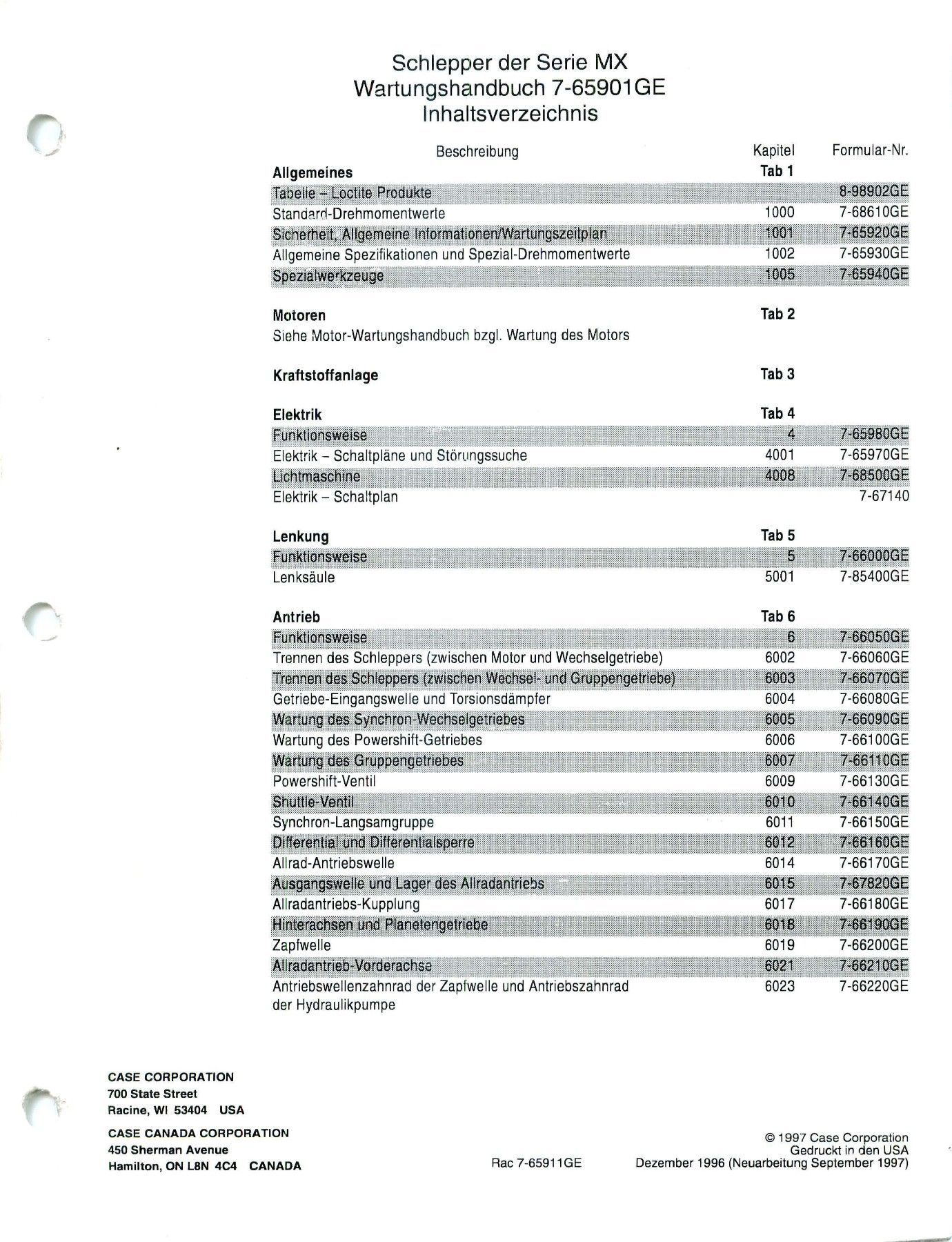 Werkstatthandbuch CASE Traktoren Serie MX 100, 110, 120, 135 (7-65901GE) 908 Seiten