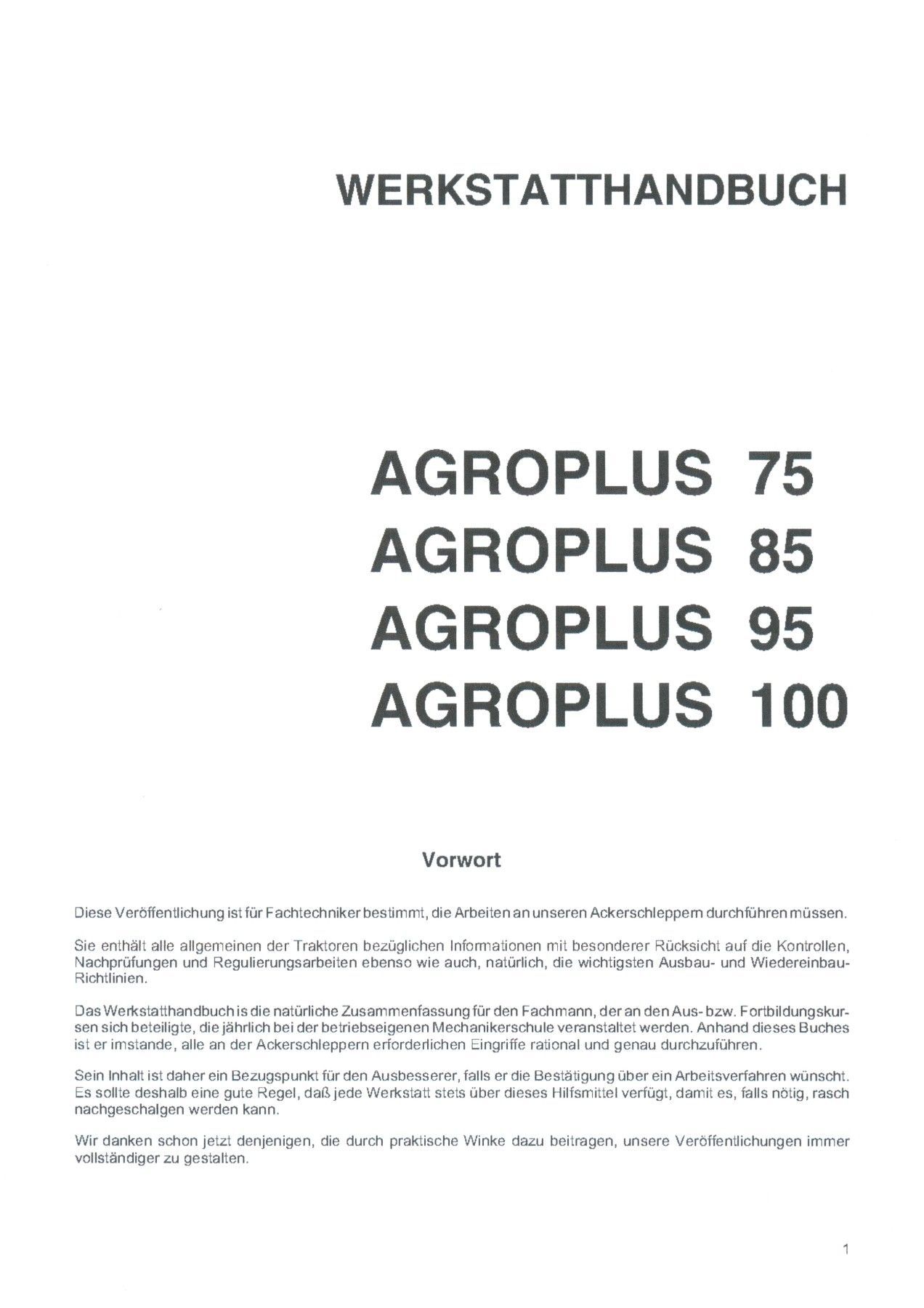 Werkstatthandbuch Deutz Fahr Agroplus 75 85 95 100