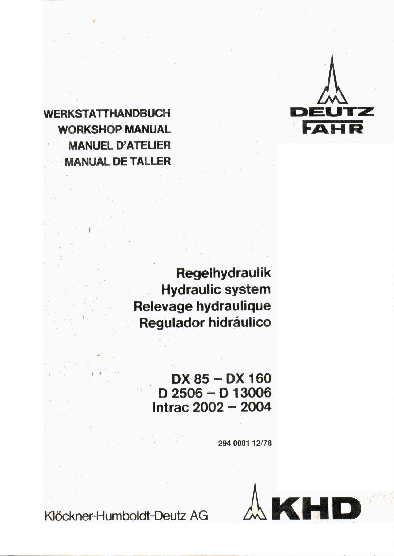 Werkstatthandbuch Deutz Fahr Regelhydraulik DX85 DX160 D2506 D13006 Intrac 2002 2004