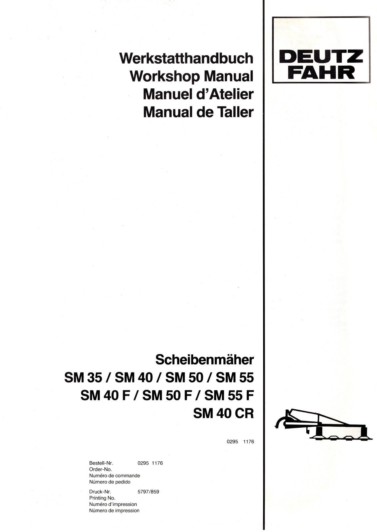 Werkstatthandbuch Deutz Fahr Scheibenmäher SM35 SM40 SM50 SM55 SM40 SM50F SM55 SM40CR