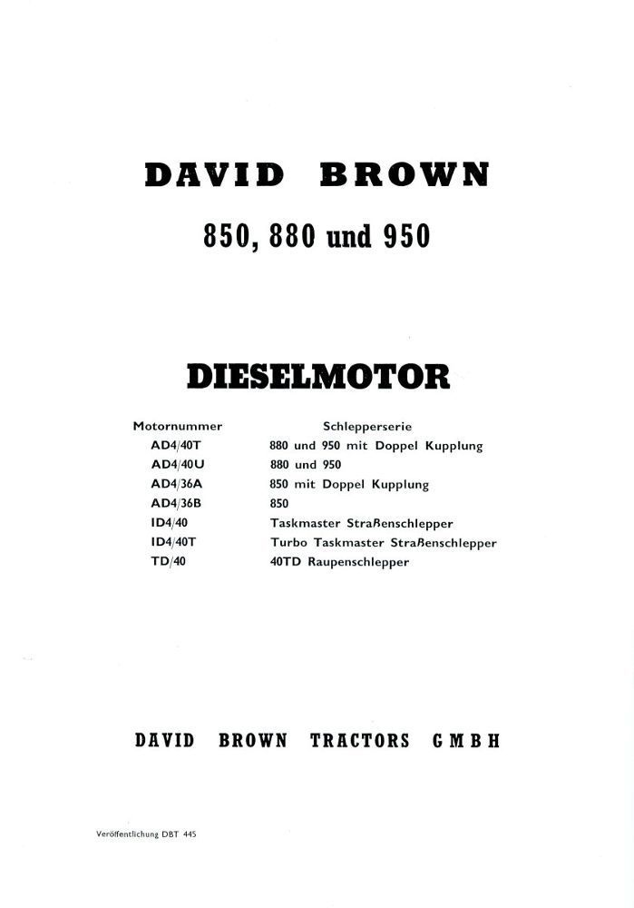 Werkstatthandbuch für die David Brown 850-880-950 Dieselmotoren