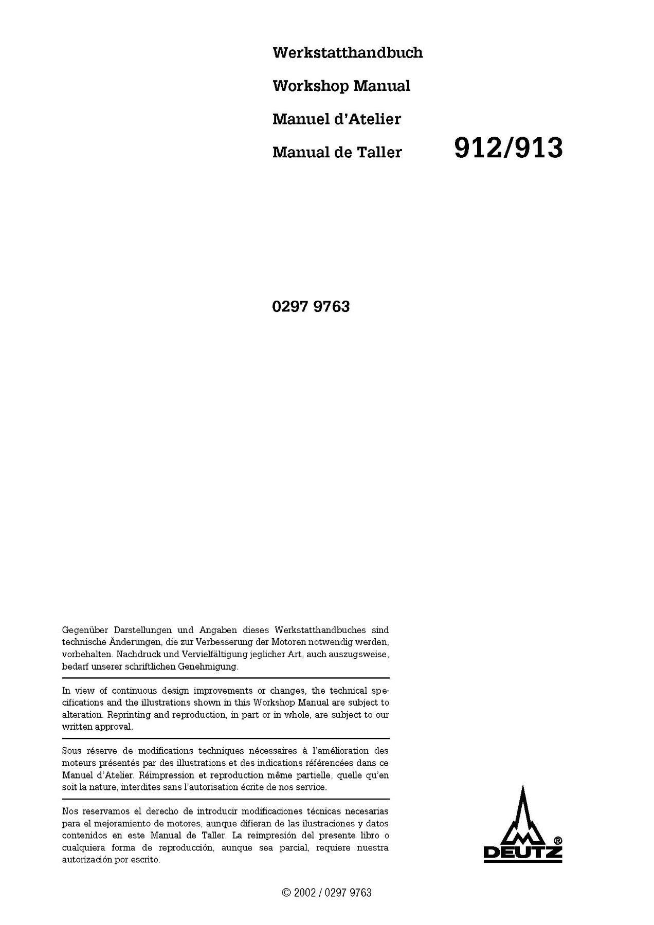 Werkstatthandbuch für die Deutz Motoren 912-913 luft (0297 9763) 2002