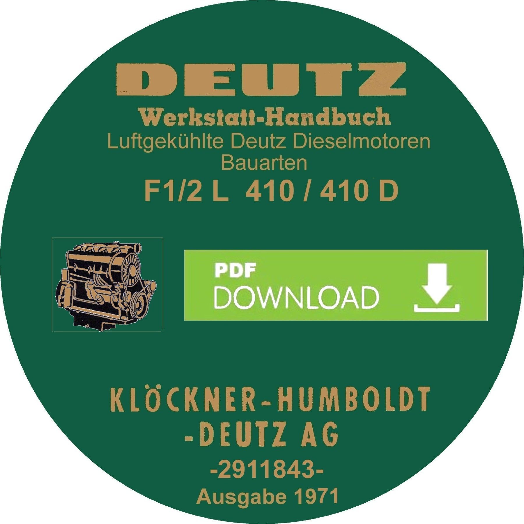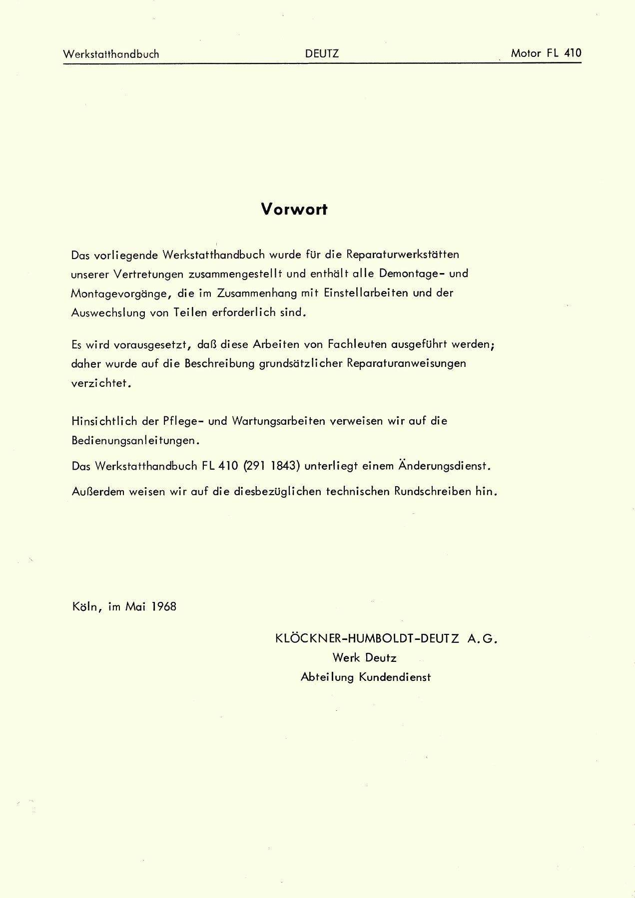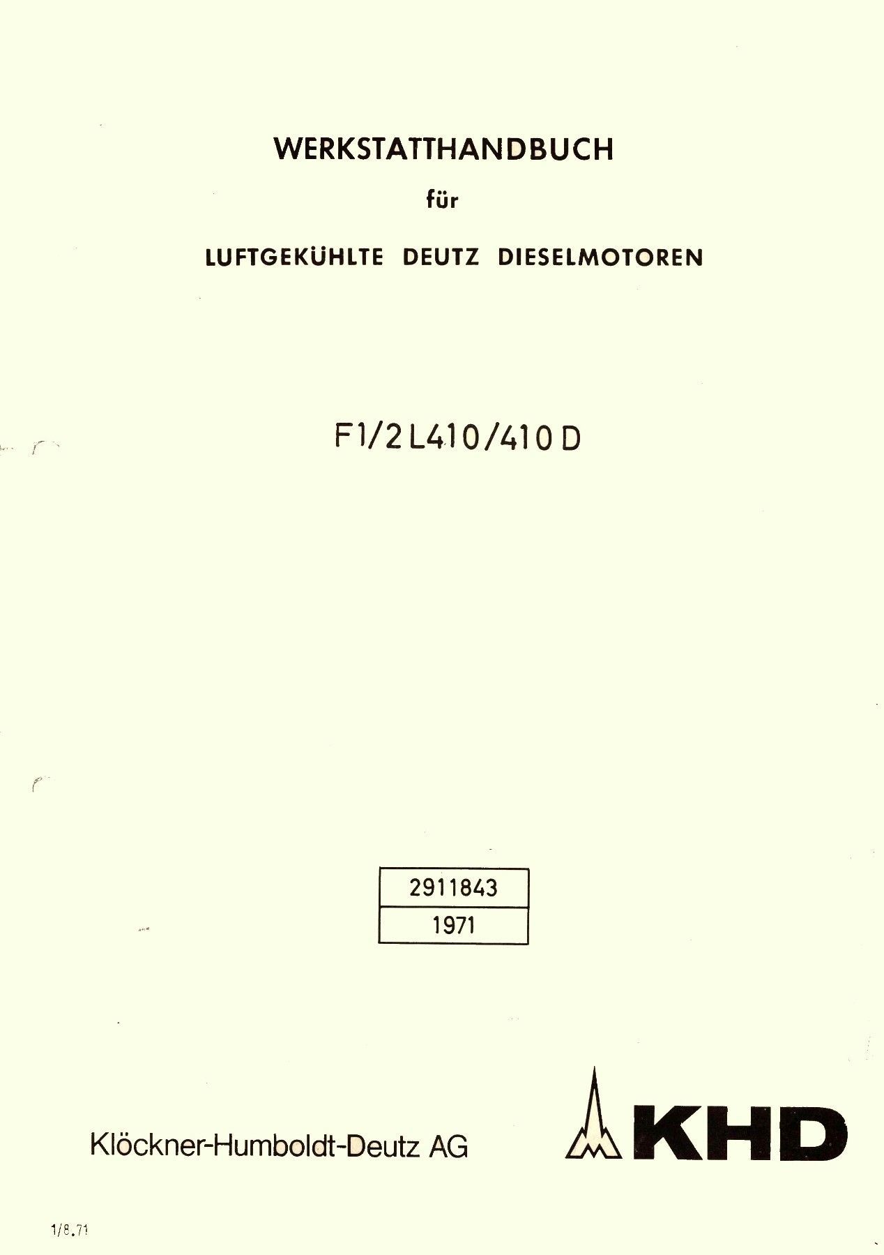 Werkstatthandbuch für die Deutz Motoren F1-2 L 410 - 410 D (2911843) Luftgek. 1971