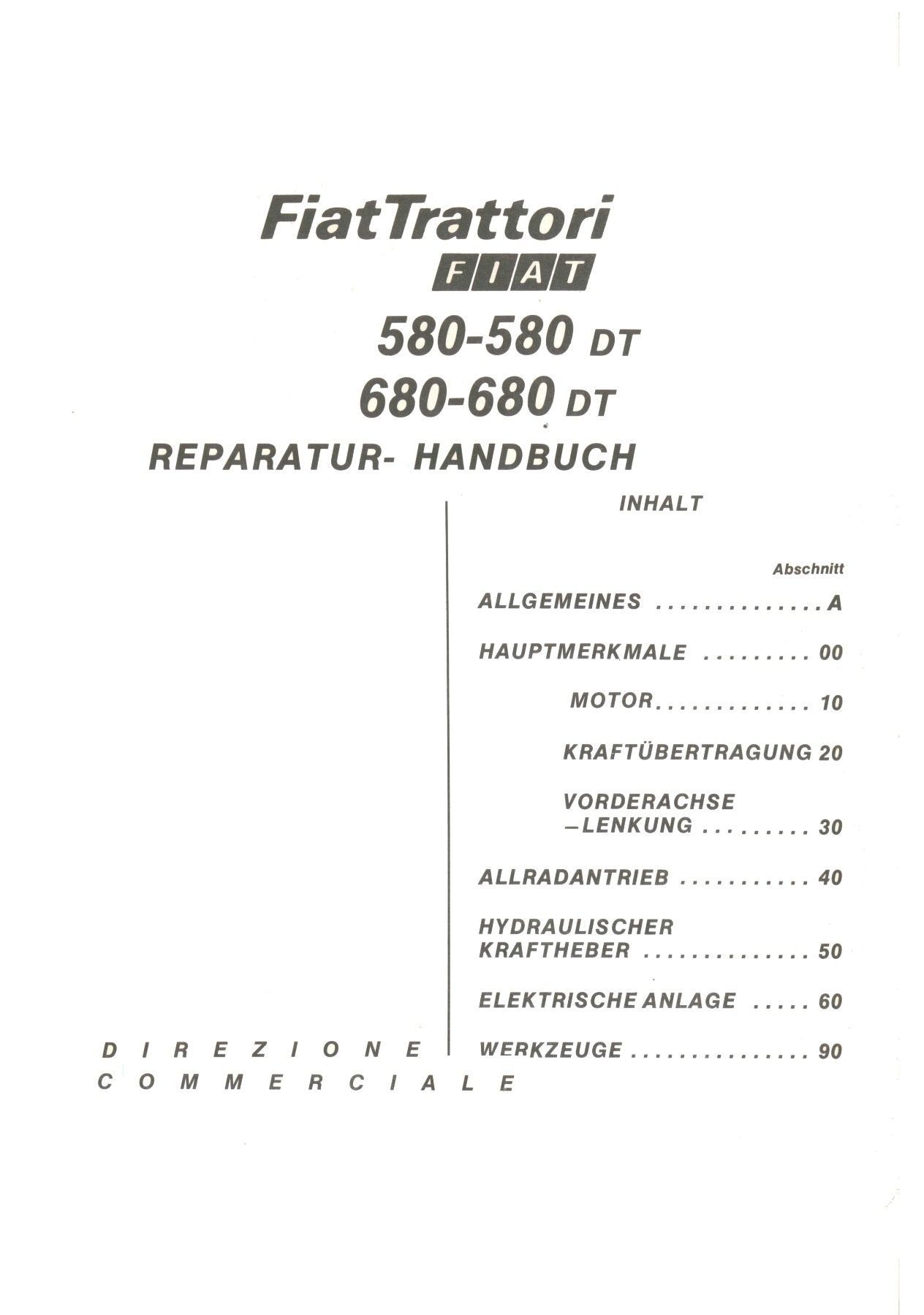 Fiat Betriebsanleitung Werkstatthandbuch für die FIAT Traktoren 580 - 580 DT 680 - 680 DT