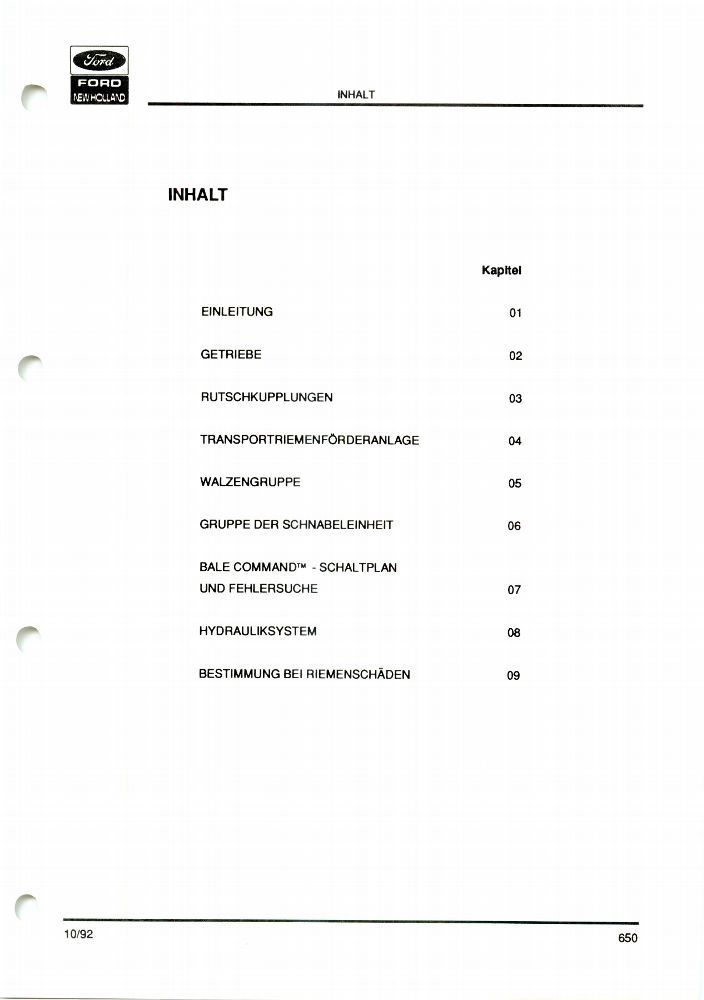 Werkstatthandbuch für die New Holland Rundballenpresse 650