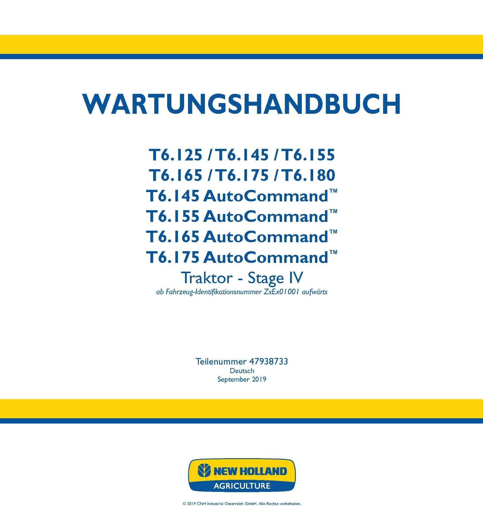 Werkstatthandbuch New Holland Serie T6.125 bis T6.180 und Auto Command Deutsch
