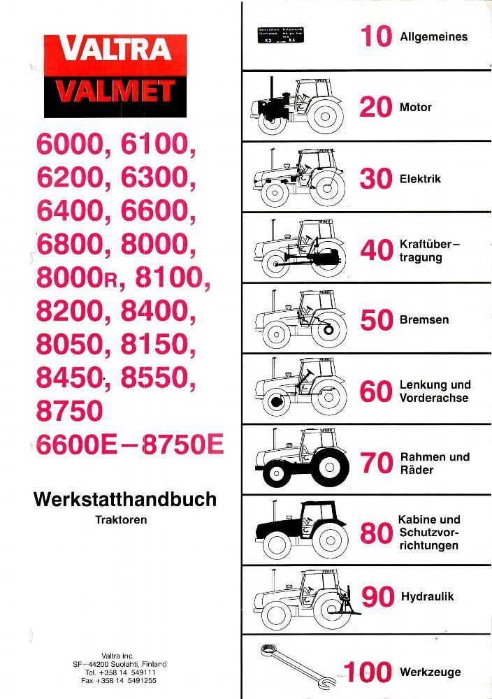 Werkstatthandbuch Reparaturanleitung Valmet Valtra 6000 bis 8750 + E
