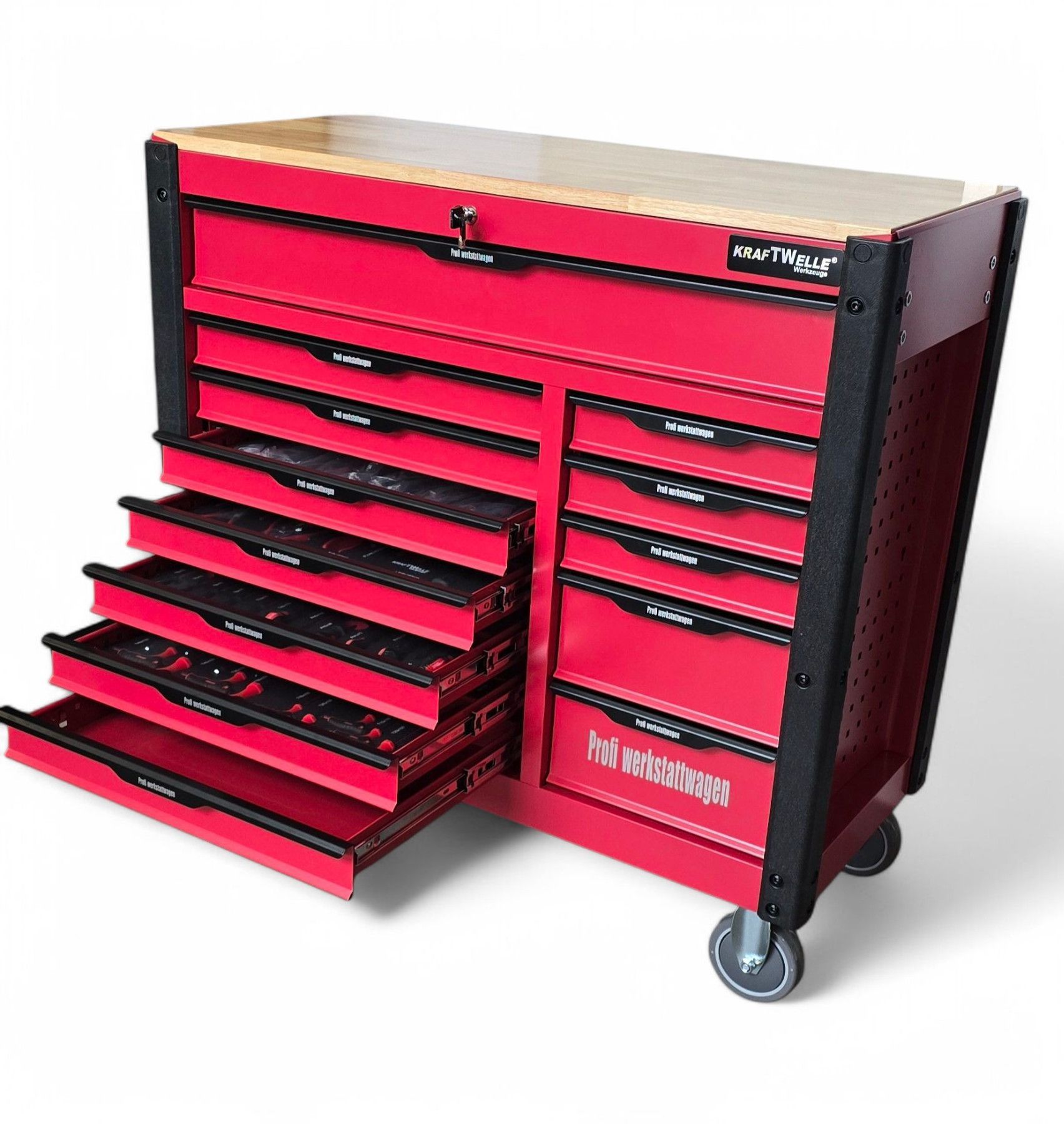 Kraftwelle Profi Werkstattwagen Werkzeugwagen Werkzeug Koffer 12 Schubläden – 457 Teile