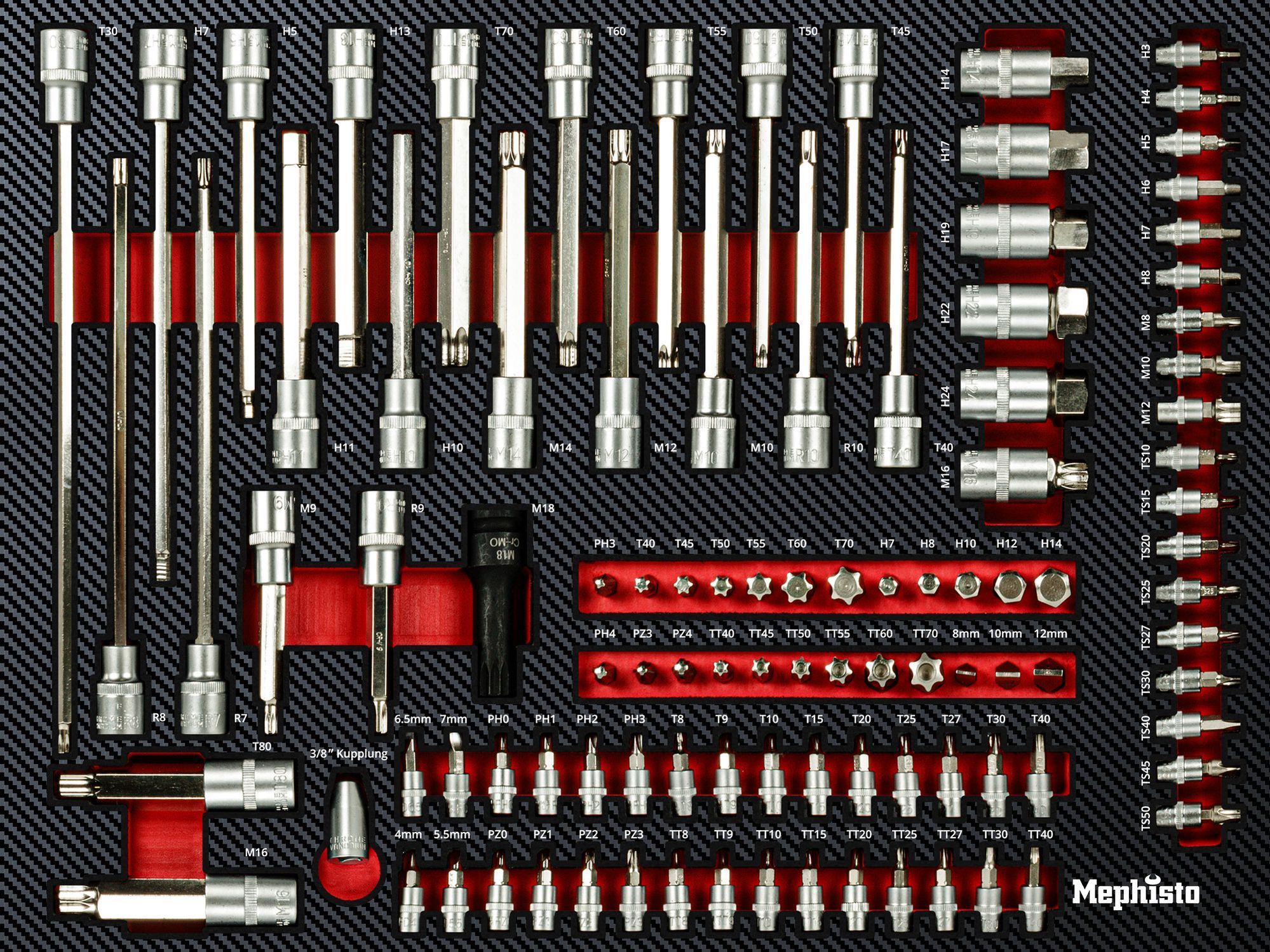 Werkzeug Set mit 7 Einlagen Module Mephisto Werkstatt Zubehör Chrom Vanadium Stahl